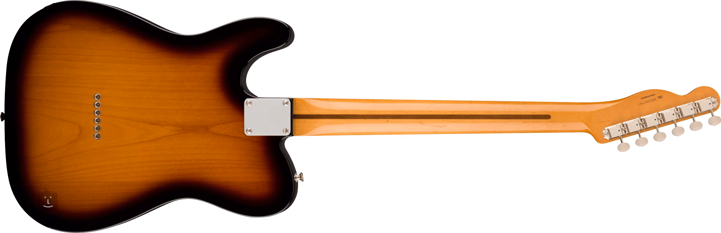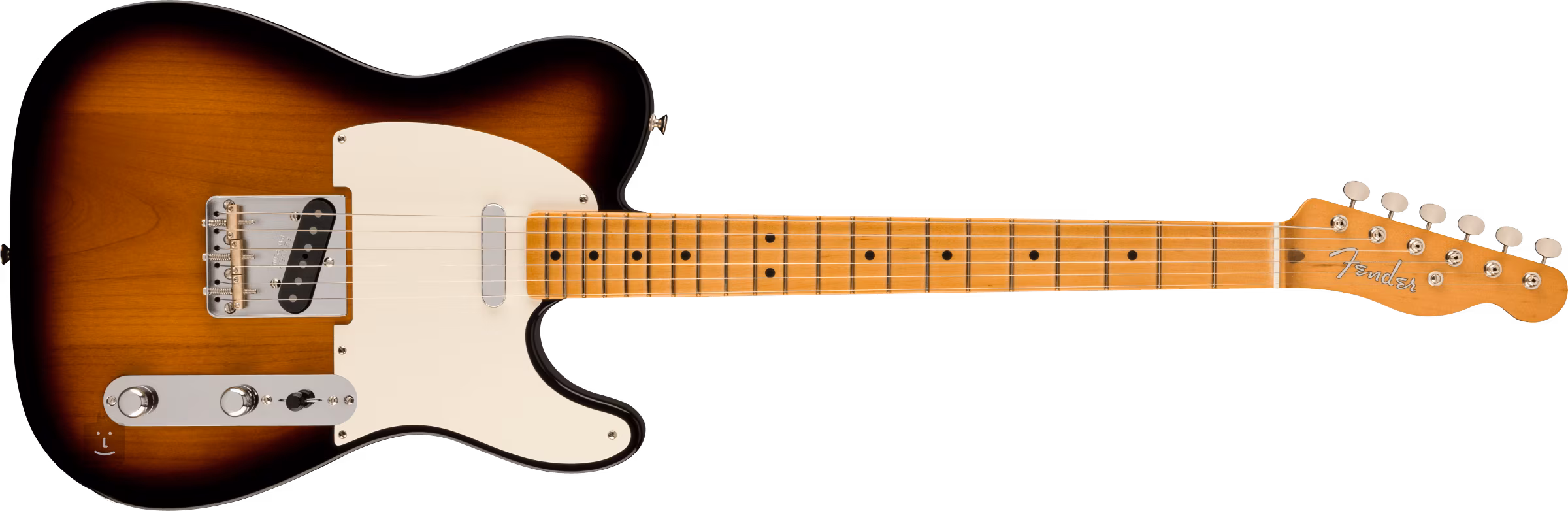 Zwei Vintage-Tonabnehmer im Stil der 50er Jahre verleihen der Gitarre den kristallklaren Ton und das metallische "Twang" der Nocaster/Telecaster-Modelle, für die diese Instrumente seit x Jahrzehnten im Fadenkreuz der Gitarristen stehen. Der Klangcharakter lässt sich mit den üblichen Lautstärke- und Tonreglern und dem dreistufigen Tonabnehmerschalter einstellen. Die Saiten werden über ein Griffbrett aus synthetischem Knochen und einen klassischen Steg im Tele-Stil mit drei Messing-Sätteln durch den Gitarrenkörper hindurch in den Vintage-Stimmmechaniken des Unternehmens gehalten. Das Styling wird durch das einlagige Schlagbrett und das Fender-Logo auf der Kopfplatte akzentuiert.