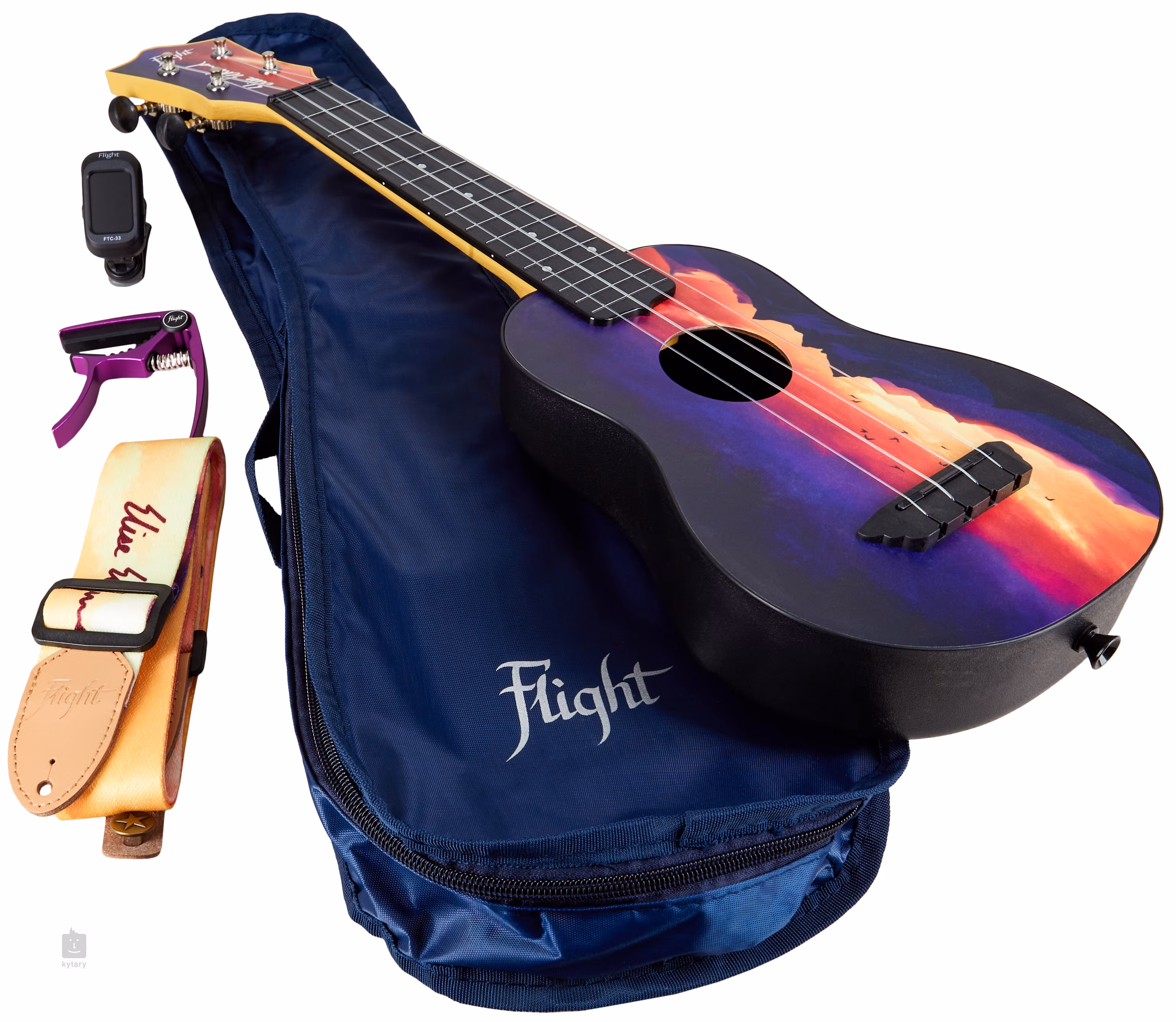 Die Travel Series von Flight bietet erschwingliche Ukulelenmodelle, die größtenteils aus ABS-Kunststoff gefertigt sind, damit sie Stimmungsschwankungen und Wetterkapriolen unbeschadet überstehen.