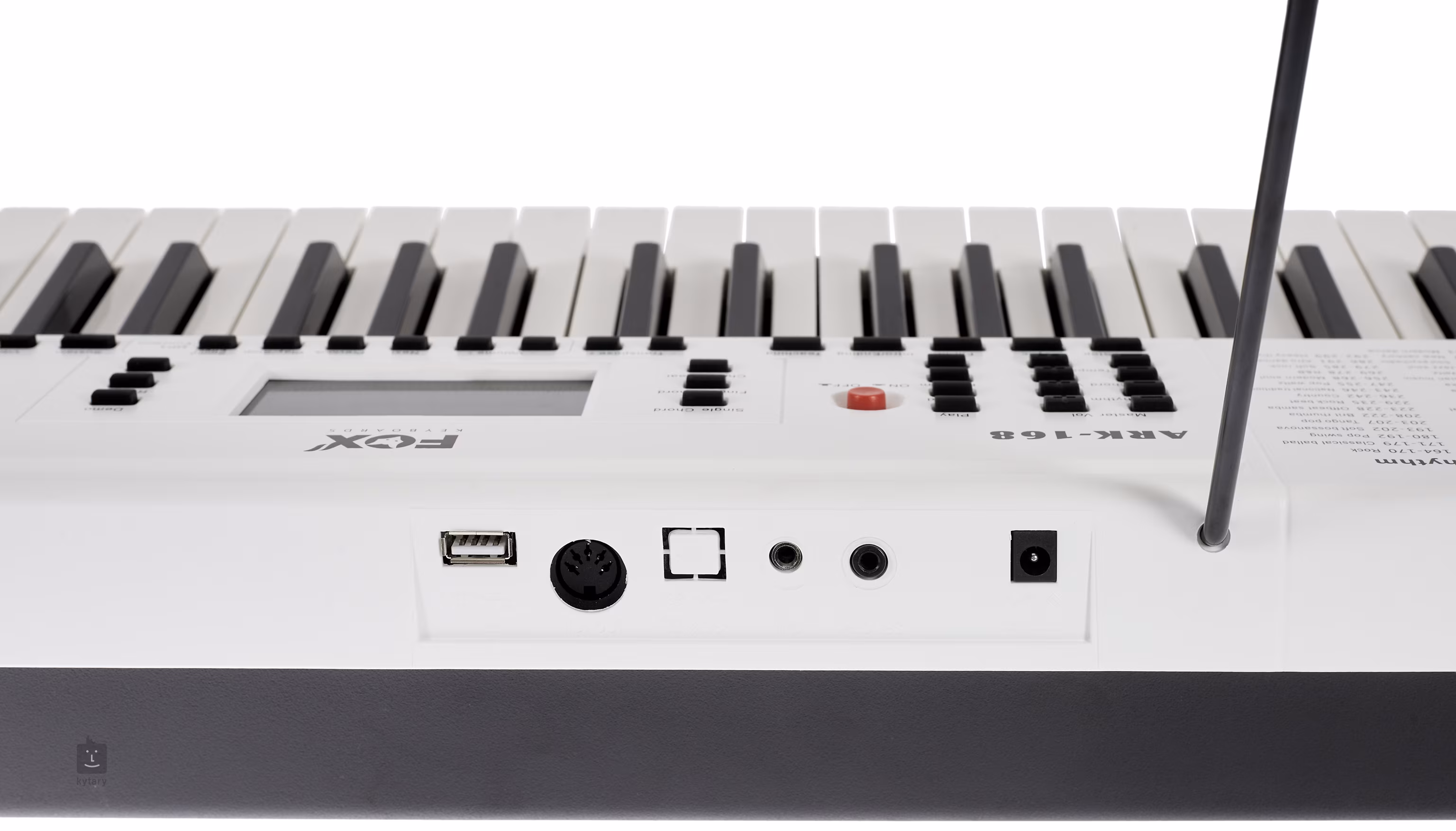 Das FOX 168 bietet 61 Tasten in Standardgröße mit Dynamik, 128 Sounds und 128 Begleitautomatiken. Außerdem gibt es erweiterte Funktionen wie Split (Aufteilung der Tastatur, um zwei Instrumente gleichzeitig zu spielen), Dual Voice (Überlagerung von Klängen) sowie Sustaine (Hall) und Vibrato-Einstellungen. Die Tastatur kann auch transponiert werden, was sowohl Anfänger als auch fortgeschrittene Spieler zu schätzen wissen werden. Natürlich gibt es die Möglichkeit, Akkorde mit einem Finger zu spielen, eine Aufnahmefunktion, um Ihre Experimente aufzuzeichnen, oder ein Metronom und ein Tutorialsystem. Sie können ein Mikrofon oder ein externes Gerät mit Ihren Lieblingsaufnahmen an die Tasten anschließen und damit jammen. Mit MIDI Out können die Tasten auch als Controller für Musiksoftware verwendet werden.