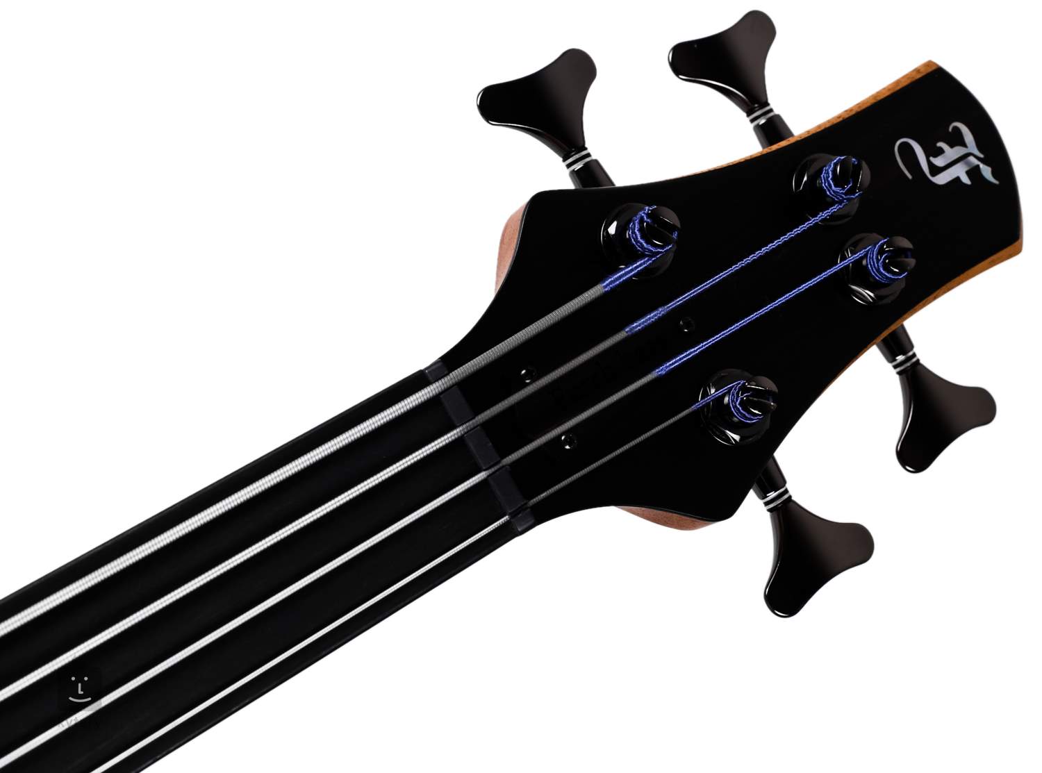 Der Furch-Akustikbass ist aus Vollmaterial gefertigt und verwendet eine firmeneigene Konstruktion für die Decke. Dieses Instrument ist ohne Kompromisse gebaut. Das Resonanzloch zum Beispiel mag in seiner Form wie moderne Kunst aussehen, aber seine Platzierung wurde sorgfältig gewählt, um die Leistung des Instruments im Bereich der tiefen Frequenzen zu maximieren.