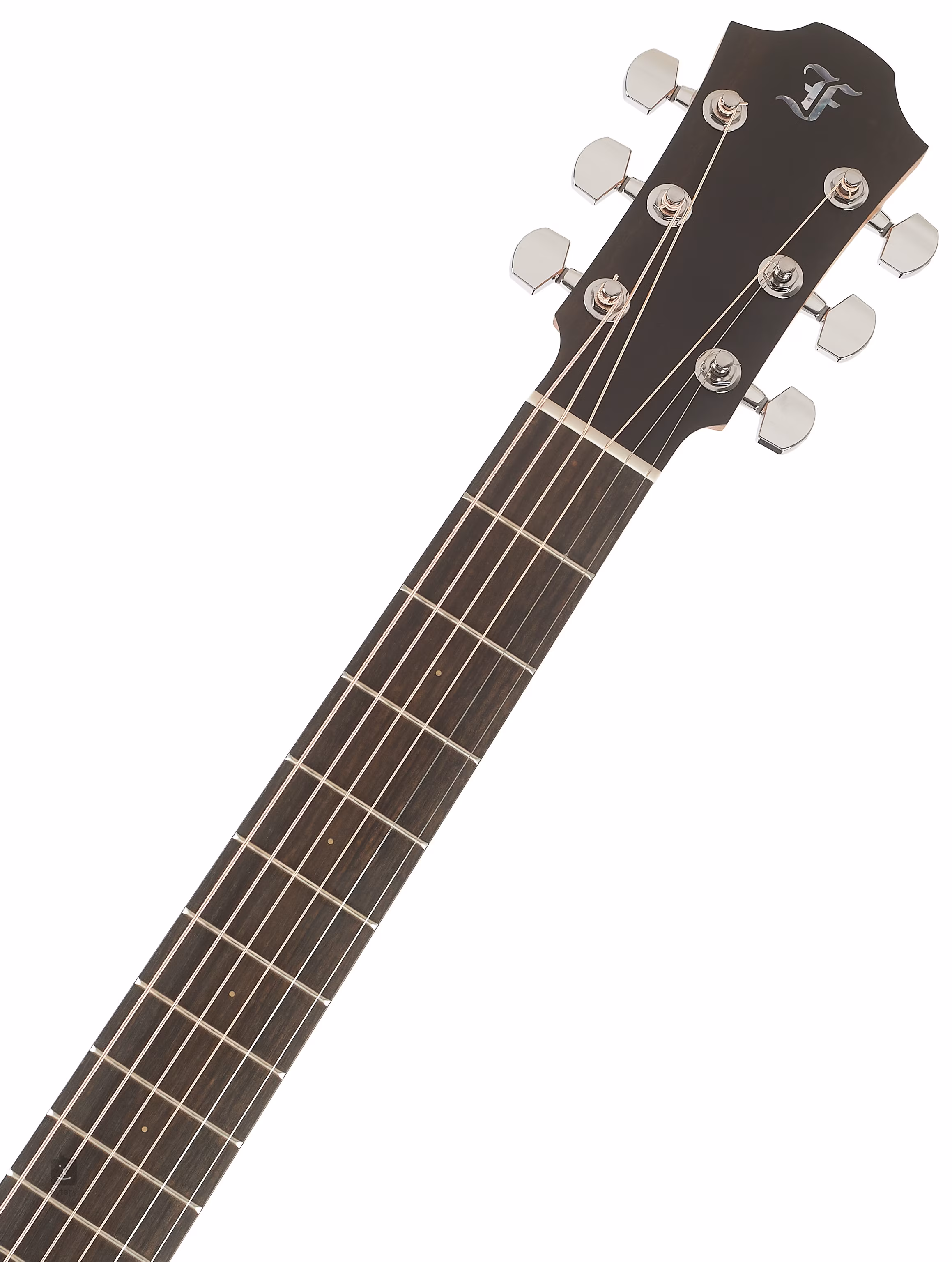 Die Orientierung auf dem Ebenholzgriffbrett wird durch seitliche und vordere Positionsmarkierungen erleichtert. Die Bünde mit verkürzten Füßen reichen bewusst nicht bis zu den Rändern des Griffbretts - das verhindert ihr Aufsteigen durch das Zusammensacken des Griffbretts bei niedriger Luftfeuchtigkeit. Die präzise und stabile Stimmung wird durch die verchromte Mechanik des Unternehmens mit einer Übersetzung von 1:18 garantiert.
