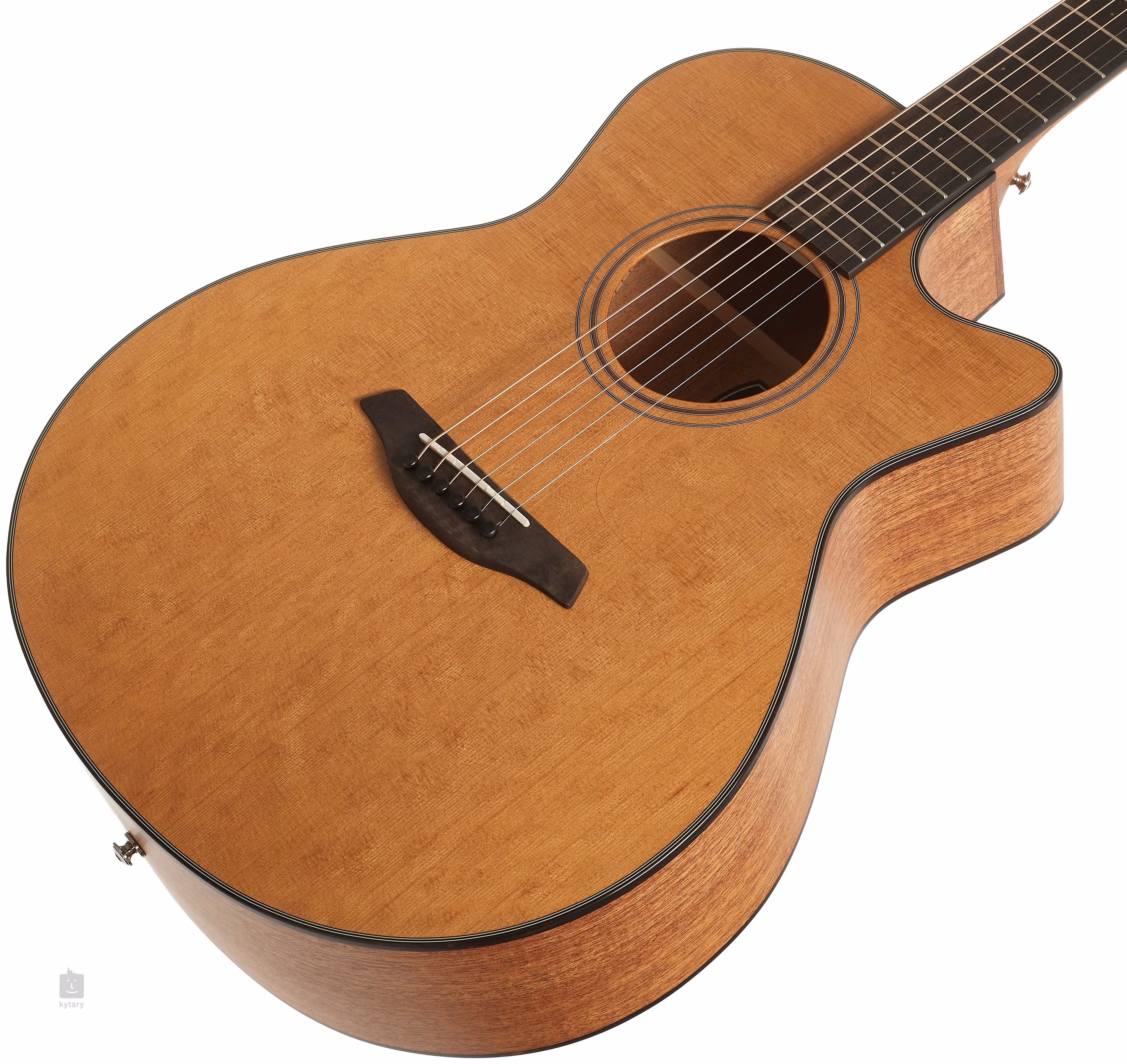 Die Furch Blue Plus Gc-CM CNR Active ist eine Akustikgitarre mit einer modernen Grand-Auditorium-Korpusform, die sich für Fingerpicking und Picking eignet. Die Vorderseite des Instruments besteht aus ausgesuchter roter Zeder in AA-Qualität, während Boden und Zargen aus afrikanischem Mahagoni der gleichen Qualität gefertigt sind. Dank einer speziellen Full-Pore High-Gloss-Lackierung ist das vordere Brett präzise poliert, während die Open-Pore-Lackierung von Boden und Zargen die natürlichen Poren des Holzes freilässt. Die exzellenten akustischen Eigenschaften werden durch die spezielle Verrippung des Resonanzbodens noch verstärkt.