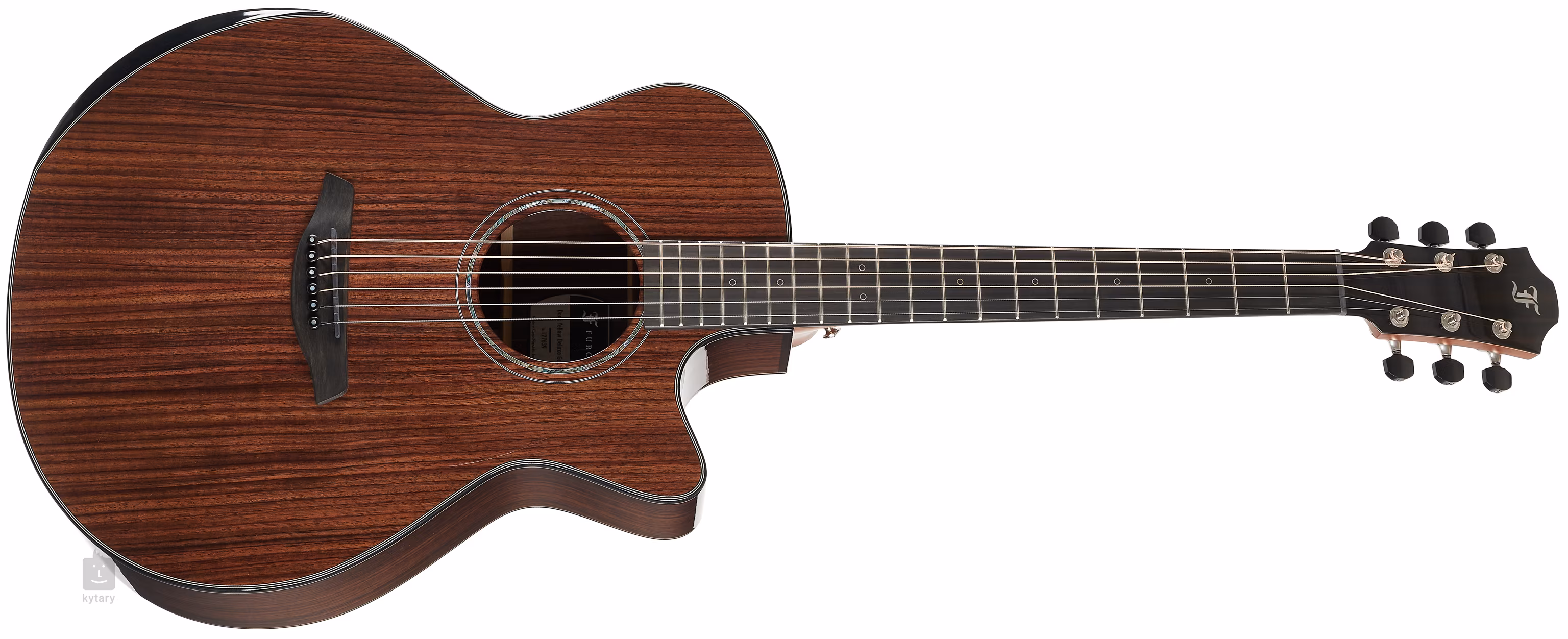 Die visuelle Schönheit der Gitarre wird durch eine Reihe von feinen Details in Form von Schildpatt-Korpuseinfassung, einer Doppelring-Rosette mit grüner Abalone-Einlage mit schwarzen und weißen Linien und linearen Seitenpositions-Punkten verstärkt.