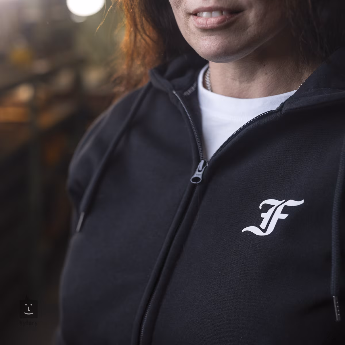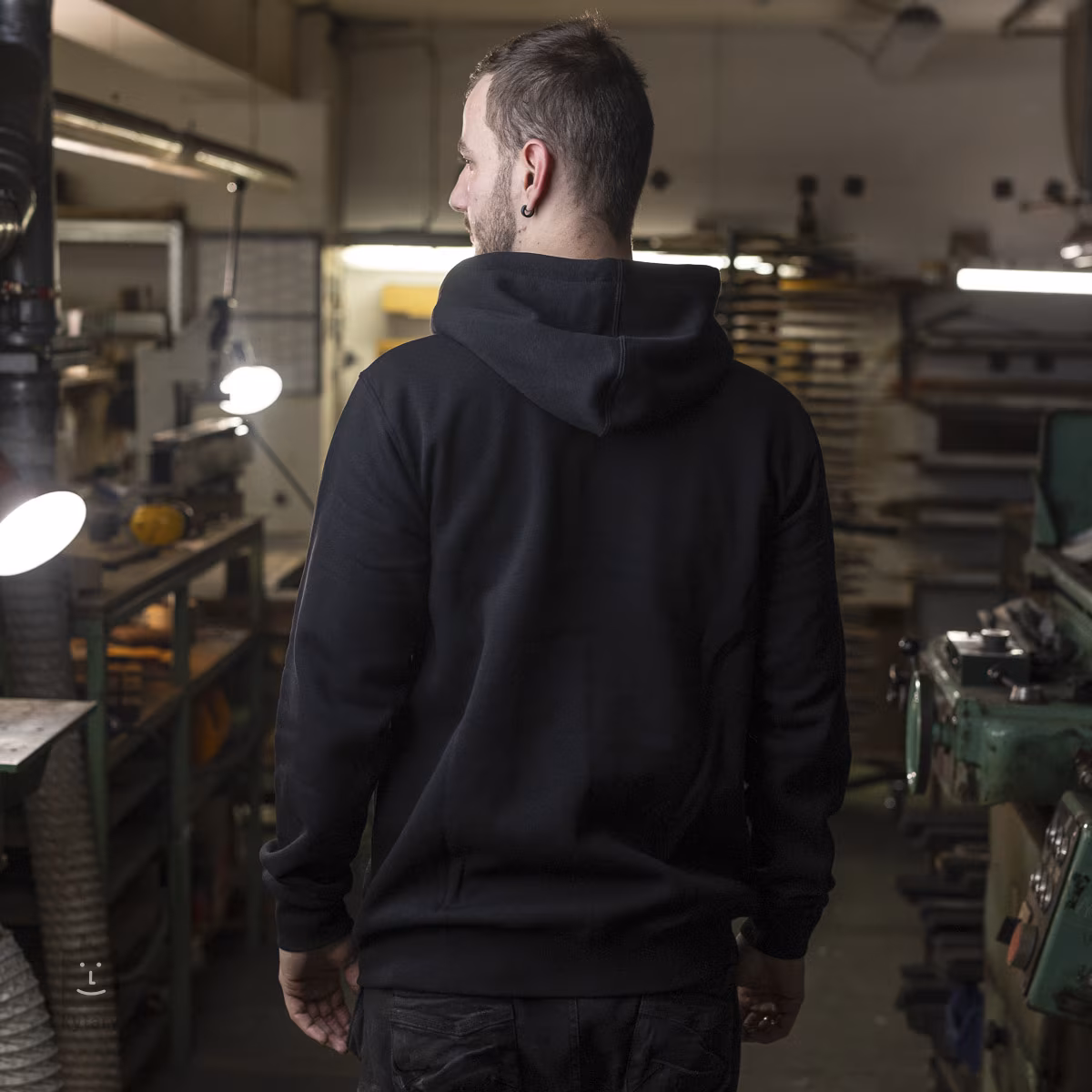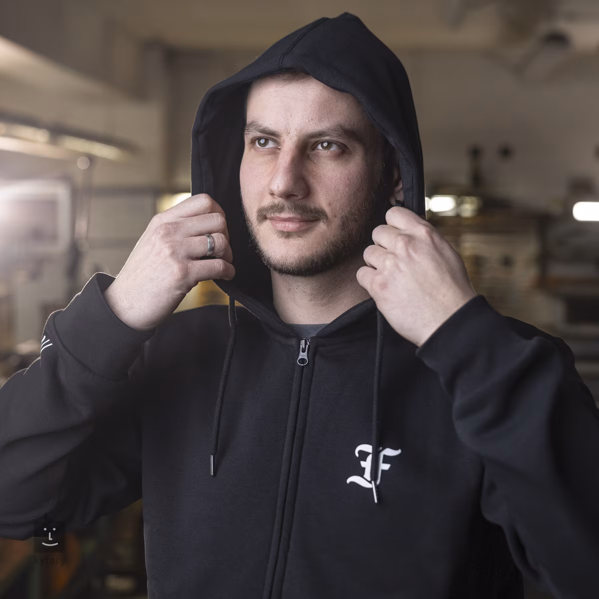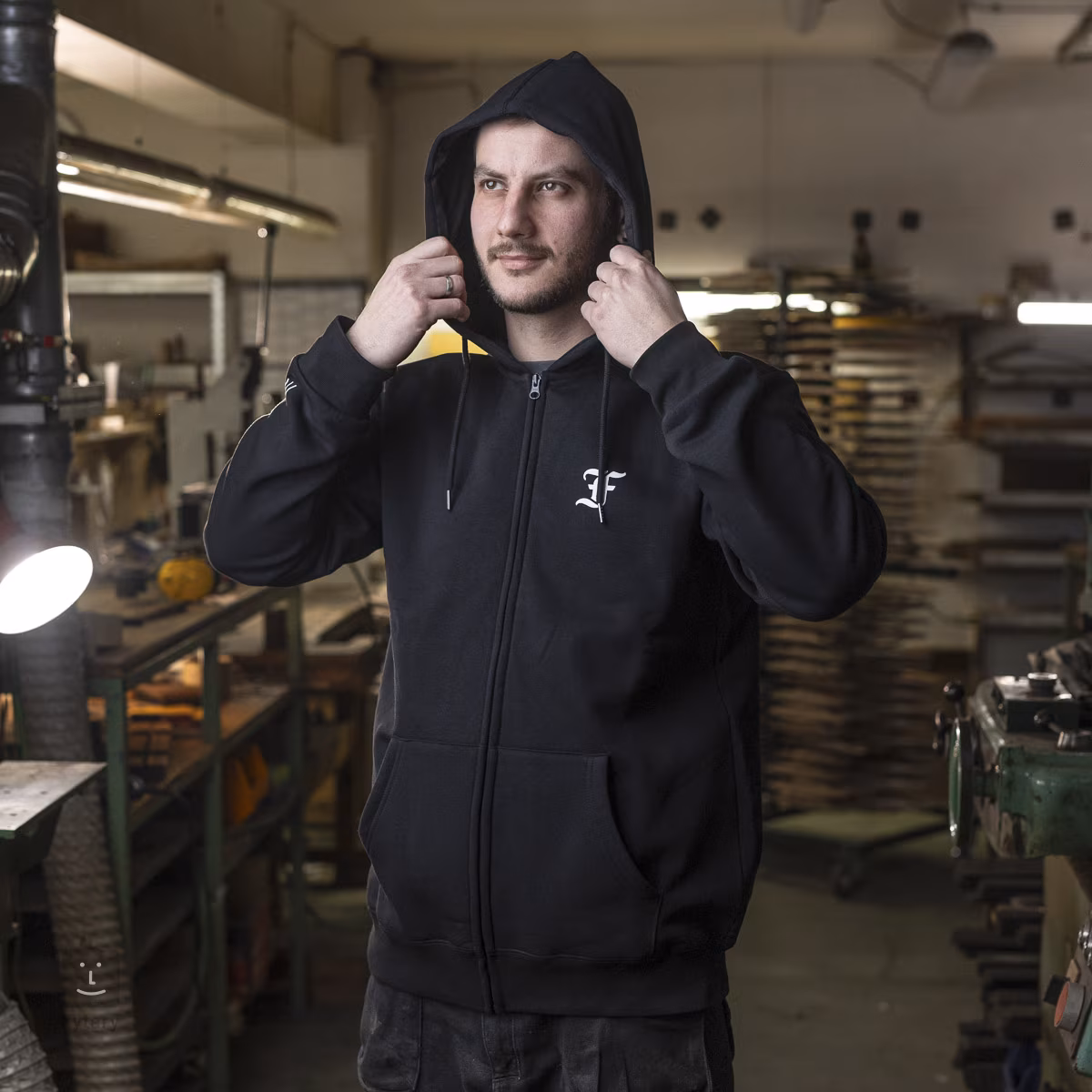 Sweatjacke mit Reißverschluss und Kapuze von Furch. Das Material, bestehend aus 65 Prozent Baumwolle und 35 Prozent Polyester, garantiert, dass das Sweatshirt seine Form behält und sich nicht ausdehnt. Das minimalistische Unisex-Design mit der markanten "6 Strings"-Grafik bietet eine Kombination aus Schlichtheit, Stil und Komfort. Der Hersteller empfiehlt, das Sweatshirt vor dem ersten Tragen zu waschen.