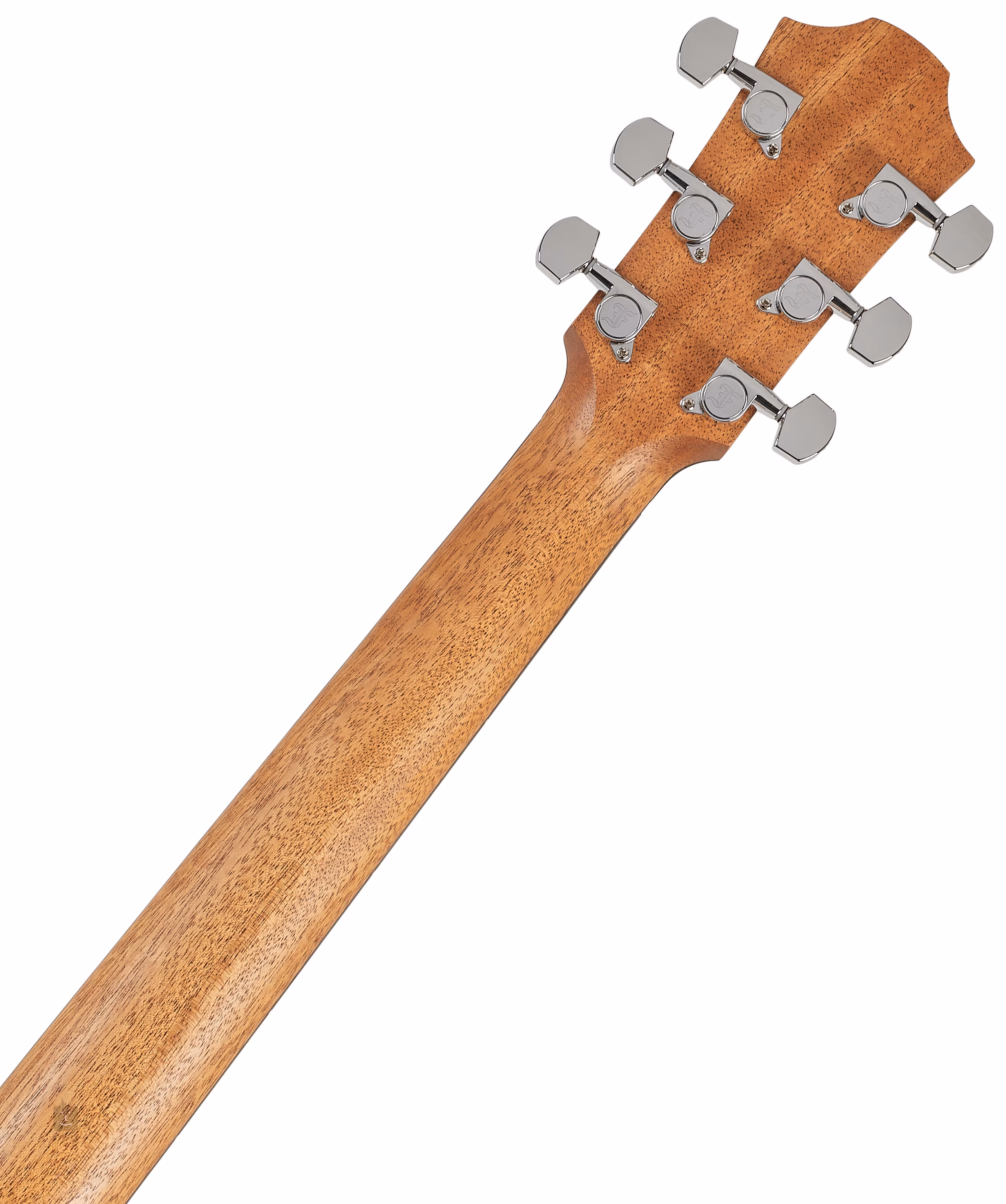 Die Vorderseite der Grand Auditorium Violet Gc-EM ist aus massiver nordamerikanischer Engelmann-Fichte gefertigt, während Boden und Zargen aus massivem Mahagoni in AA-Qualität gefertigt sind. Front, Boden und Zargen sind mit einem Open Pore Finish versehen, das das Instrument schützt und die natürlichen Klangeigenschaften des Holzes fördert. Die hervorragenden akustischen Eigenschaften der Instrumente werden durch die spezielle Riffelung des Resonanzbodens noch verstärkt.