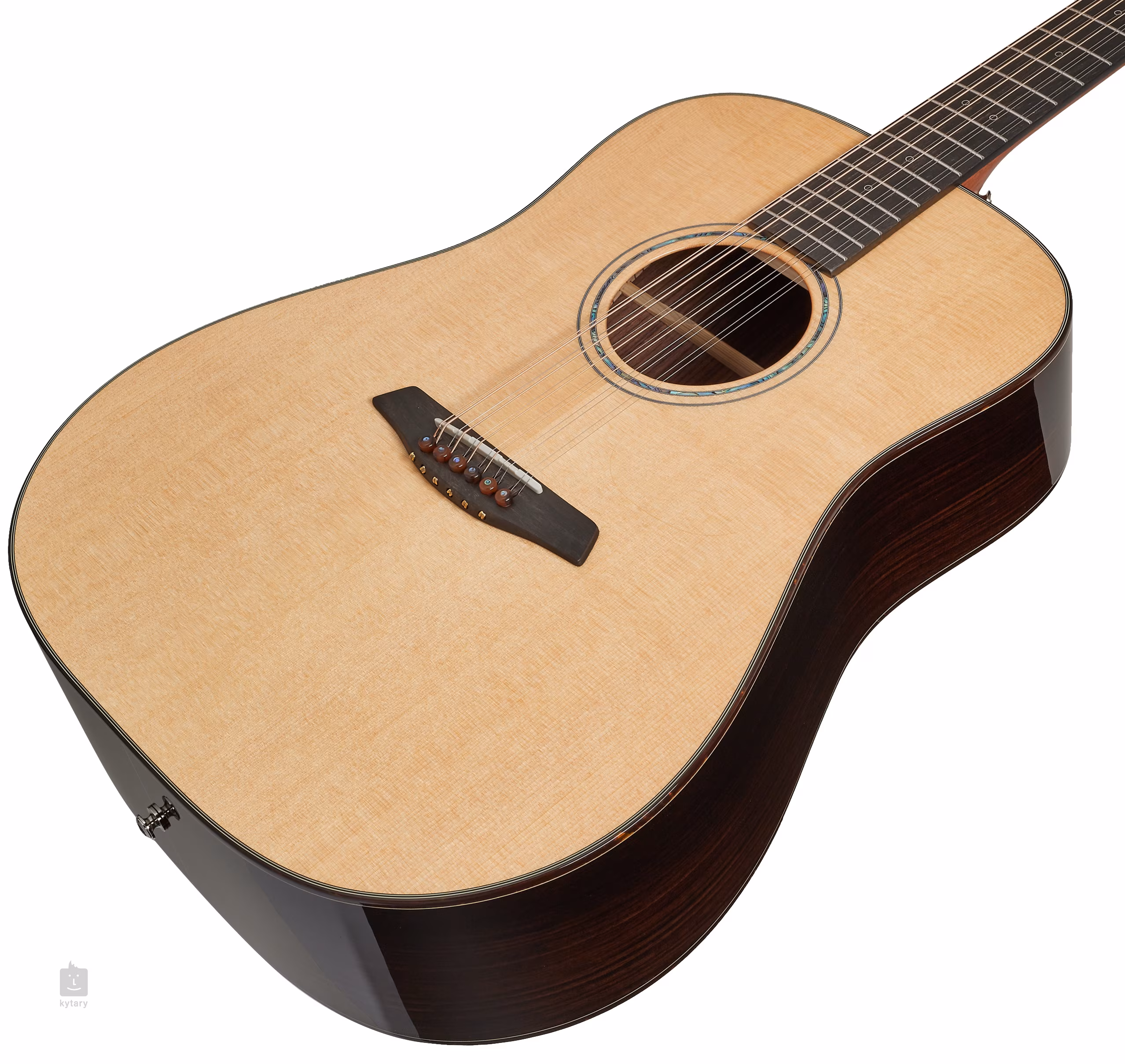Die Furch Yellow D-SR 12 CNR Active ist eine 12-saitige Akustikgitarre mit dem beliebten großen Dreadnought-Korpus. Die Vorderseite der Gitarre ist aus Sitka-Fichte höchster Qualität (AAA) gefertigt, während die Zargen und der Boden aus sorgfältig ausgewähltem indischem Palisander der Qualität AA bestehen. Die Full-Pore High-Gloss-Lackierung, eine vollporige Hochglanzlackierung, verbessert die akustischen Eigenschaften der Gitarren, bietet einen ausgezeichneten Oberflächenschutz und bringt die natürliche Struktur des Holzes zur Geltung.