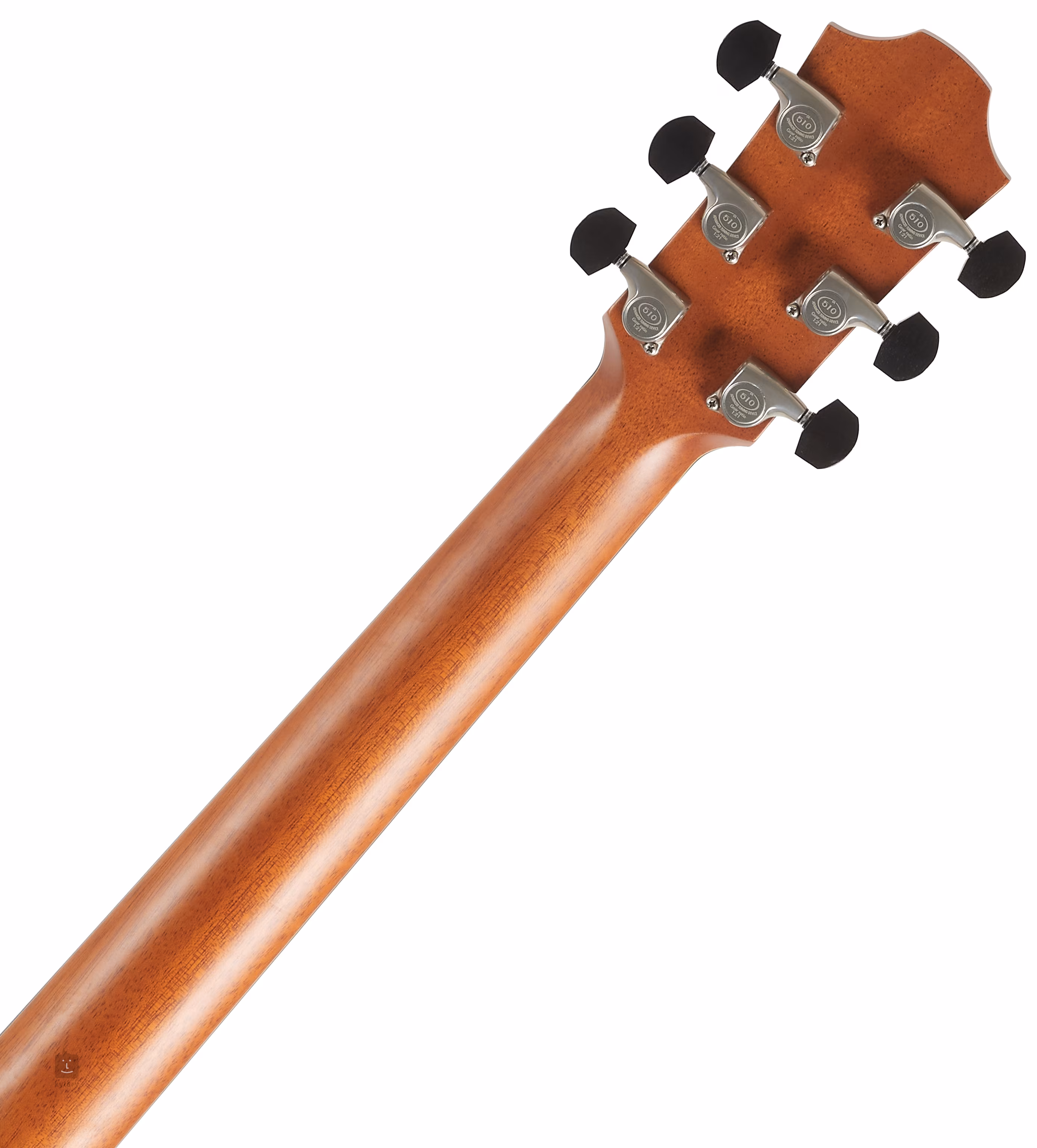 Das attraktive Erscheinungsbild der Gitarre wird durch eine Reihe von Details unterstrichen: eine Rosette, die aus einem mit grünem Abalone eingelegten Doppelring besteht, ein Schlagbrett aus fünf Schichten schwarzer und weißer Kontrastlinien sowie seitliche lineare und vordere runde Positionsmarkierungen aus Perlmutt. Das transparente Schlagbrett lässt die natürliche Maserung des Holzes zur Geltung kommen, ohne die Resonanz des Resonanzbodens zu beeinträchtigen. Für eine stabile Stimmung sorgt die hochwertige Gotoh 510 Mechanik in Silberpatina mit Ebenholzwirbeln und feiner 1:21-Übersetzung.