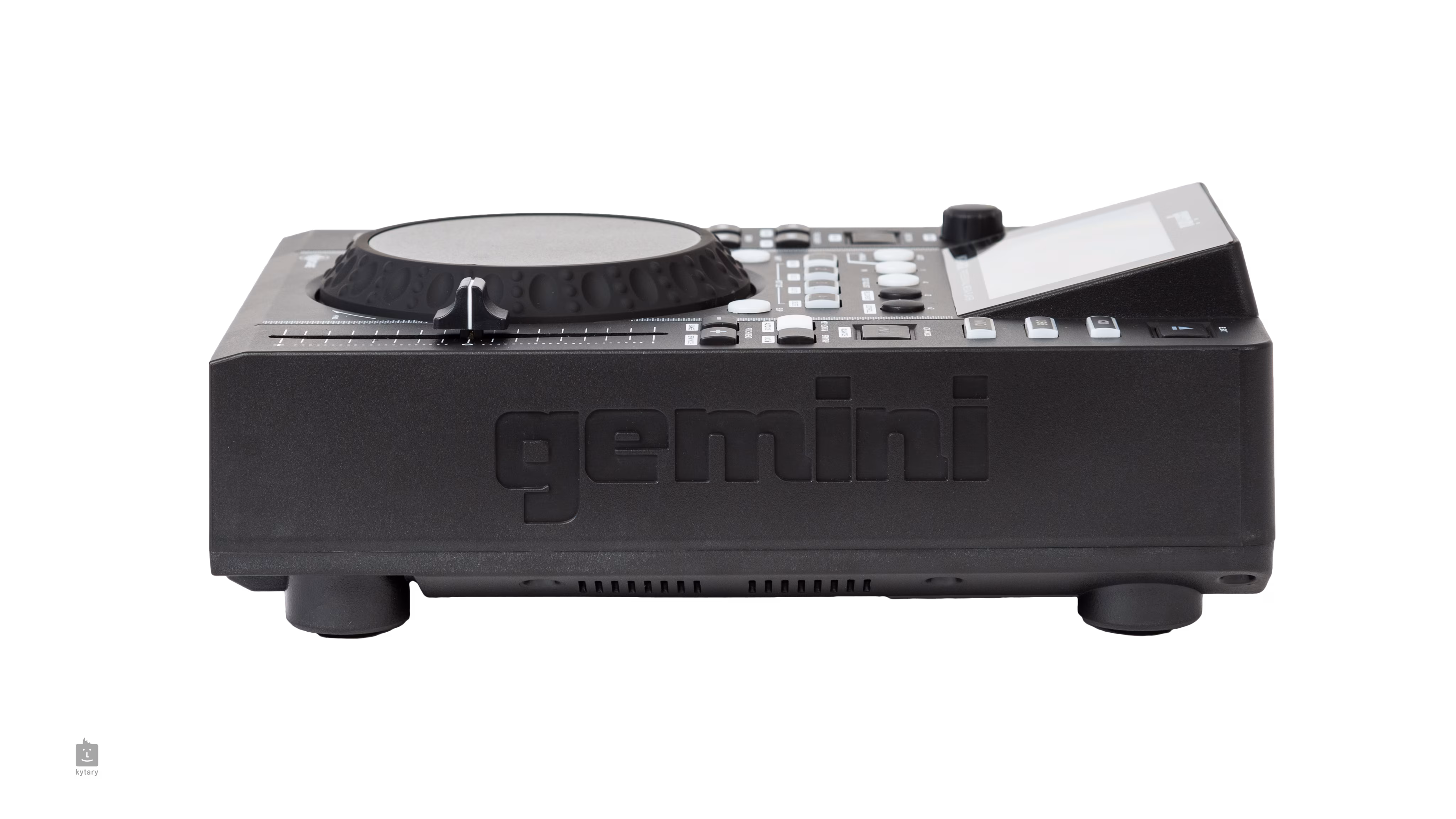 Das Gerät verfügt über einen berührungsempfindlichen 8-Zoll-Jog-Teller mit Widerstandseinstellung, ein 4,3-Zoll-Farbdisplay, 4 Cue-Punkte und Tasten für einfaches Looping. Mit dem CD-Laufwerk und dem USB-A-Anschluss können die Formate WAV, MP3, AAC und AIFF direkt von externen Medien abgespielt werden. Über den USB-B-Anschluss kann das Gerät an einen Computer angeschlossen werden, wo es auch als 24-Bit/192-kHz-Audio-Interface dient.