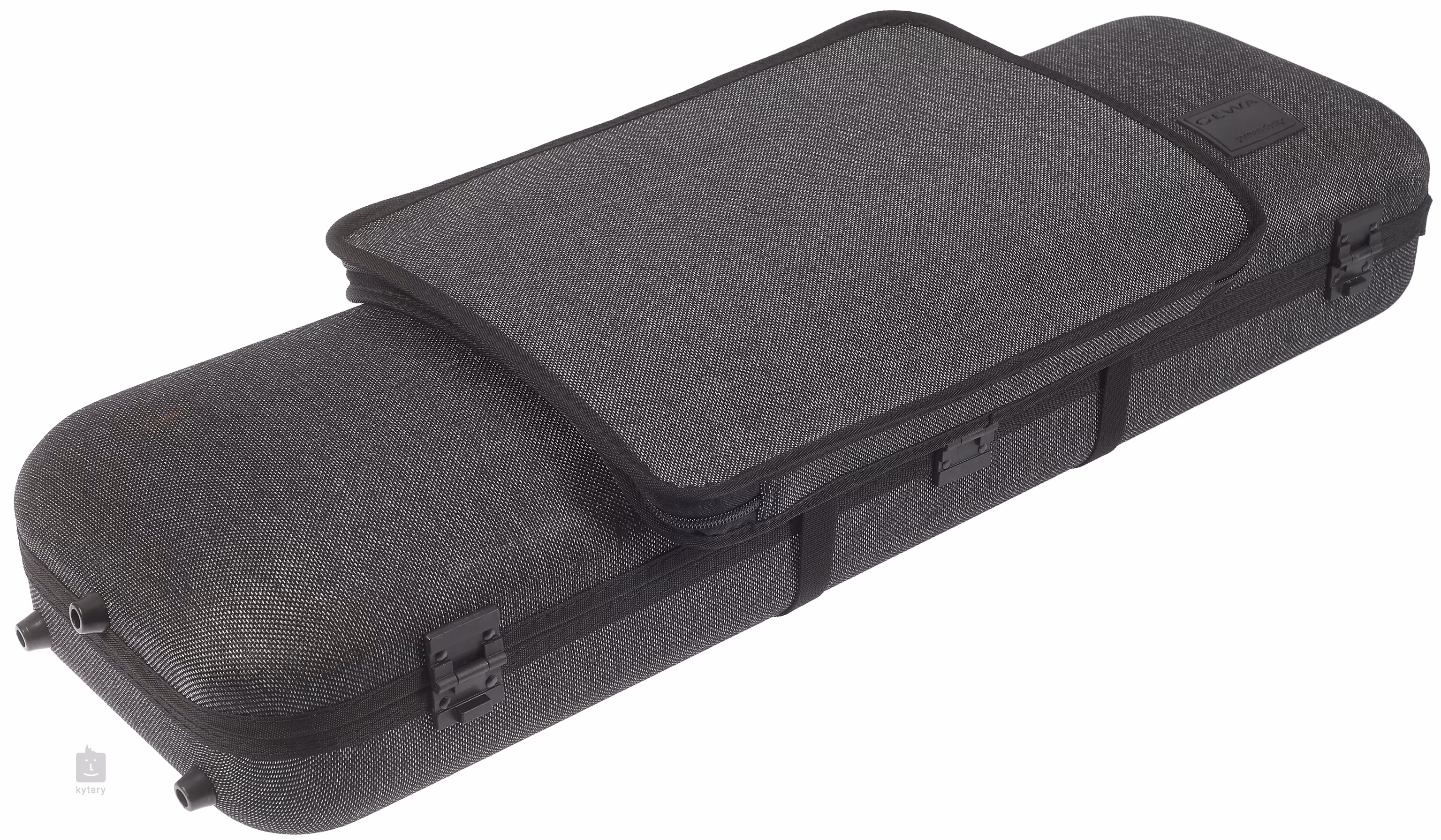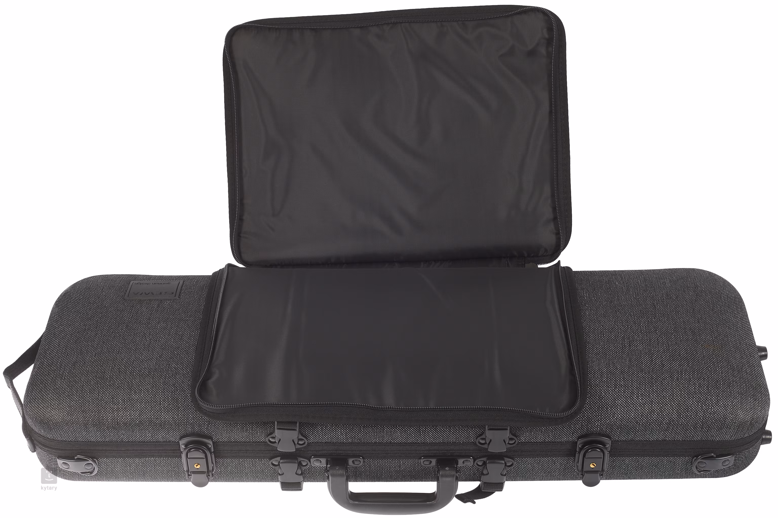 Gewa bringt einen Koffer mit traditionellem Aussehen auf den Markt, der jedoch aus einem nicht-traditionellen, erneuerbaren Material - Bioflachs - hergestellt wird. Er bietet dank eines verschiebbaren Halshalters Platz für praktisch alle Geigentypen. Außerdem bietet er eine schwenkbare Befestigung für zwei Bögen.