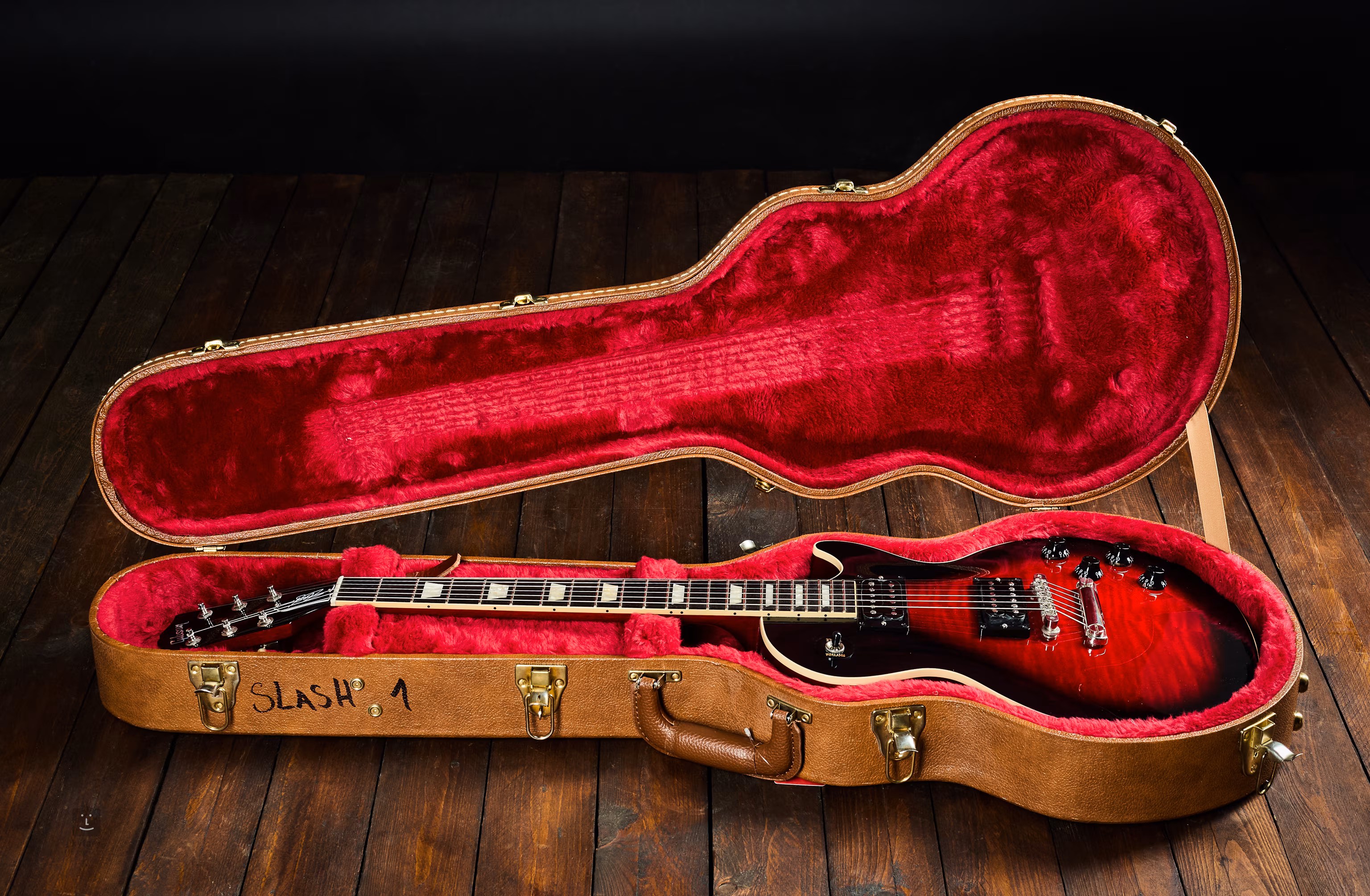 Signature Slash in dunkelrot sunburst, American Les Paul von 2021 in ausgezeichnetem Zustand.