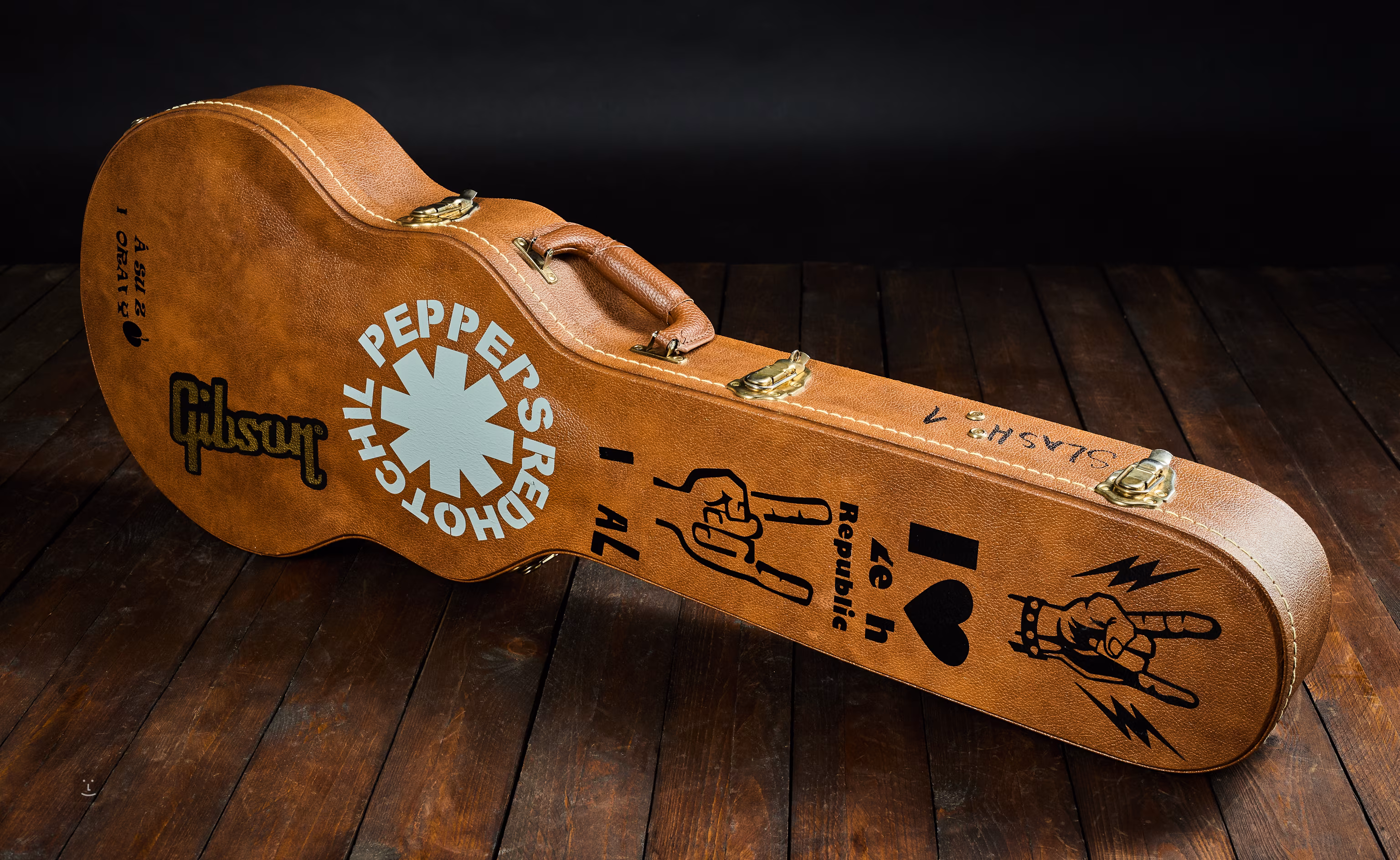 Die Gitarre hat hier und da einen Fleck in der Farbe, ansonsten ist sie in einem tadellosen und originalen Zustand. Der Originalkoffer ist mit Aufklebern versehen.