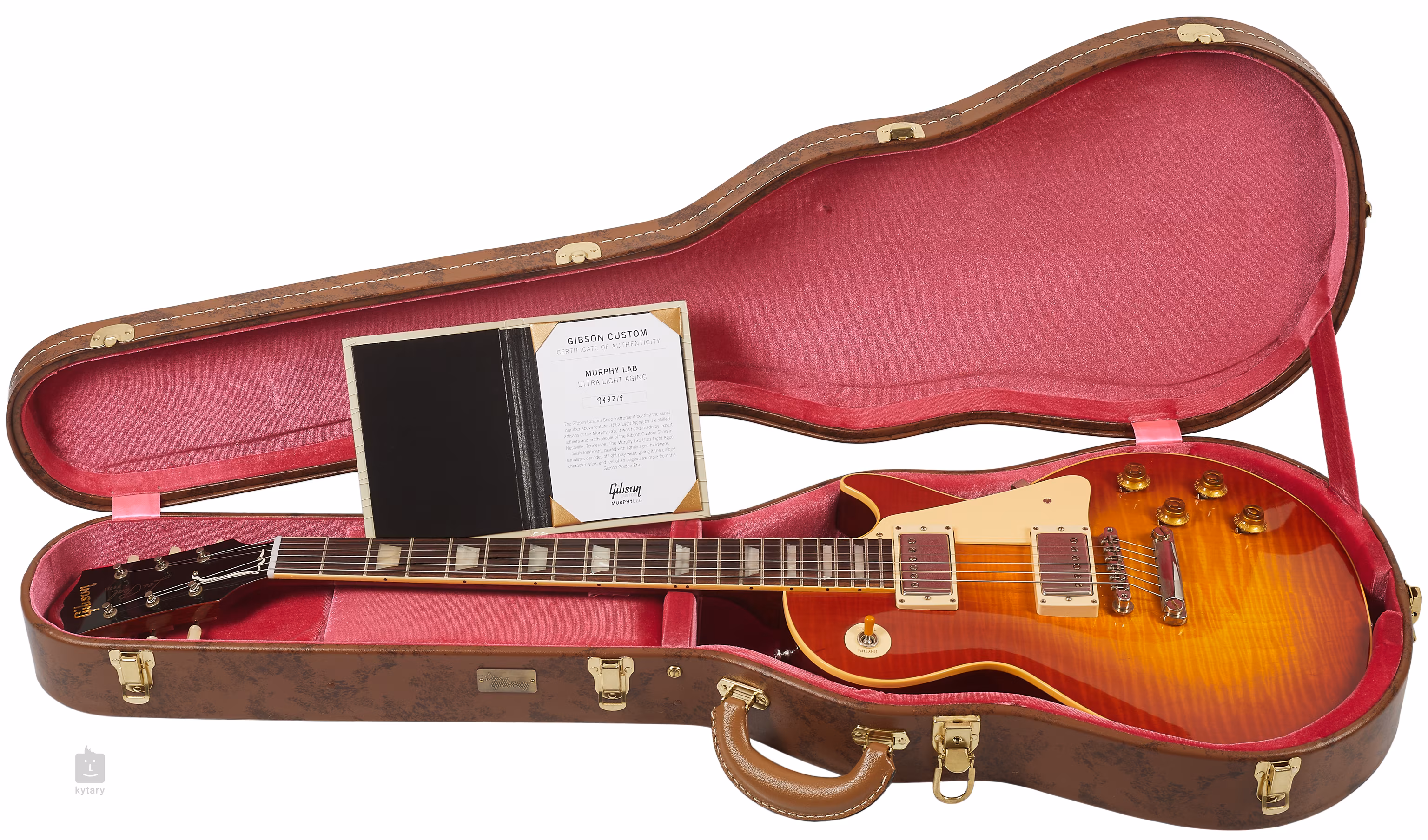 Die CS 1959 Les Paul Standard Reissue Ultra Light Aged Sunrise Teaburst ist ein Gibson Custom Shop-Modell aus der Murphy Lab Collection, die völlig neue Gitarren mit dem Aussehen, dem Spielgefühl und der Handwerkskunst der alten Originale hervorbringt.