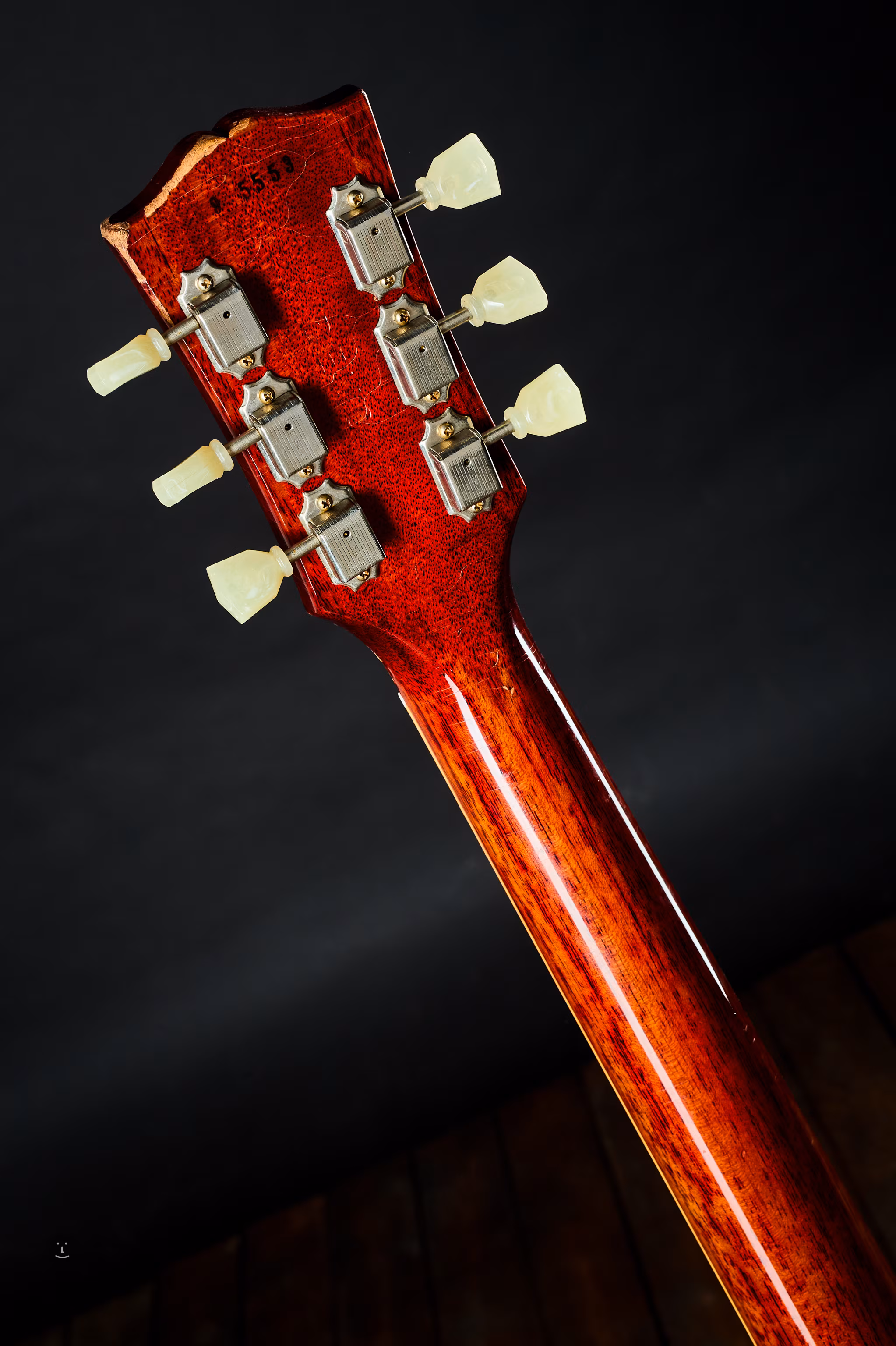 Ein Ex-Demo-Instrument, das wir direkt von Gibsons offiziellem Vertriebspartner erworben haben - dies ist ein Instrument, das für Showroom, Demonstrationszwecke von Gibsons Firmenspielern verwendet wurde. Die Rückseite der Kopfplatte ist mit DEMO gestempelt und das Instrument weist leichte Gebrauchsspuren auf.