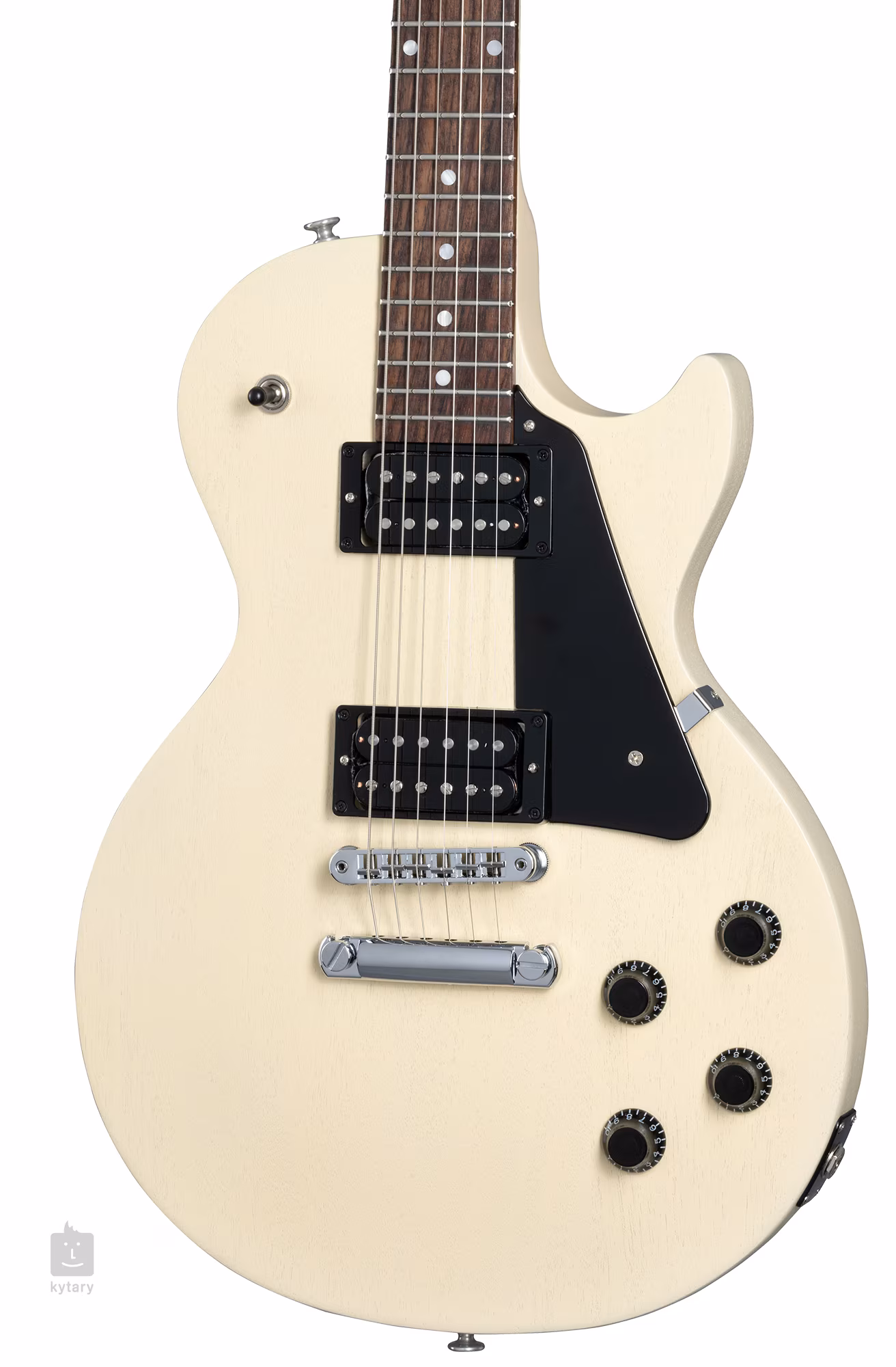 Der Korpus der Les Paul Modern Lite TV Wheat ist mit einer satinierten Nitrocellulose-Lackierung und der Farbgebung TV Wheat versehen. Ein Mahagoni-Hals mit einem komfortablen "Slim Taper"-Profil ist mit einem Griffbrett aus indischem Palisander verleimt, das mit zweiundzwanzig Medium-Jumbo-Bünden ausgestattet ist. Das Griffbrett lässt sich durch die Positionierungspunkte aus Perlmuttimitat (Acrylic Dot) leicht ausrichten.