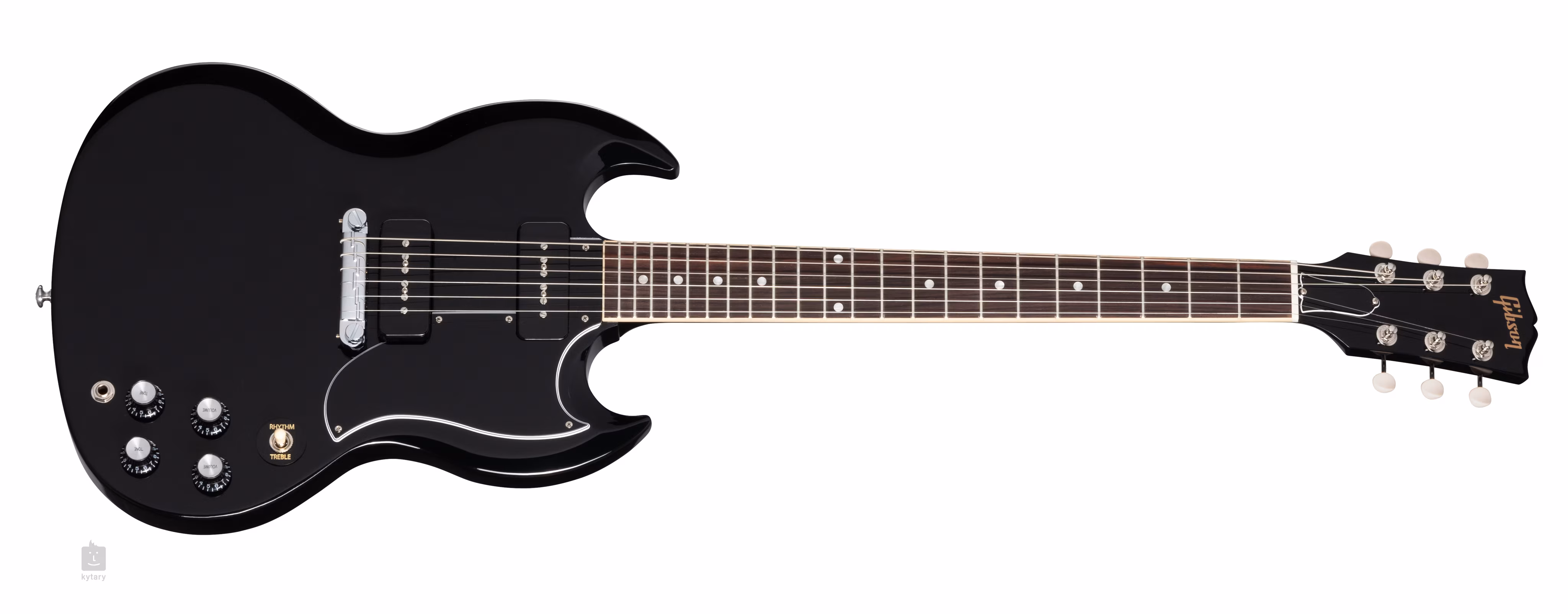 Die SG Special Ebony verfügt über das klassische SG-Design aus den frühen 1960er Jahren. Der Mahagonikorpus der Gitarre ist mit einer dünnen Schicht Nitrocelluloselack überzogen, die das Holz atmen lässt und die klanglichen Eigenschaften des Instruments verbessert. Ein Mahagoni-Hals mit einem komfortablen Slim-Taper-Profil ist auf ein Palisander-Griffbrett geklebt, das mit zweiundzwanzig Medium-Jumbo-Bünden ausgestattet ist. Die Orientierung auf dem Griffbrett wird durch Positionspunkte aus Perlmuttimitat erleichtert.