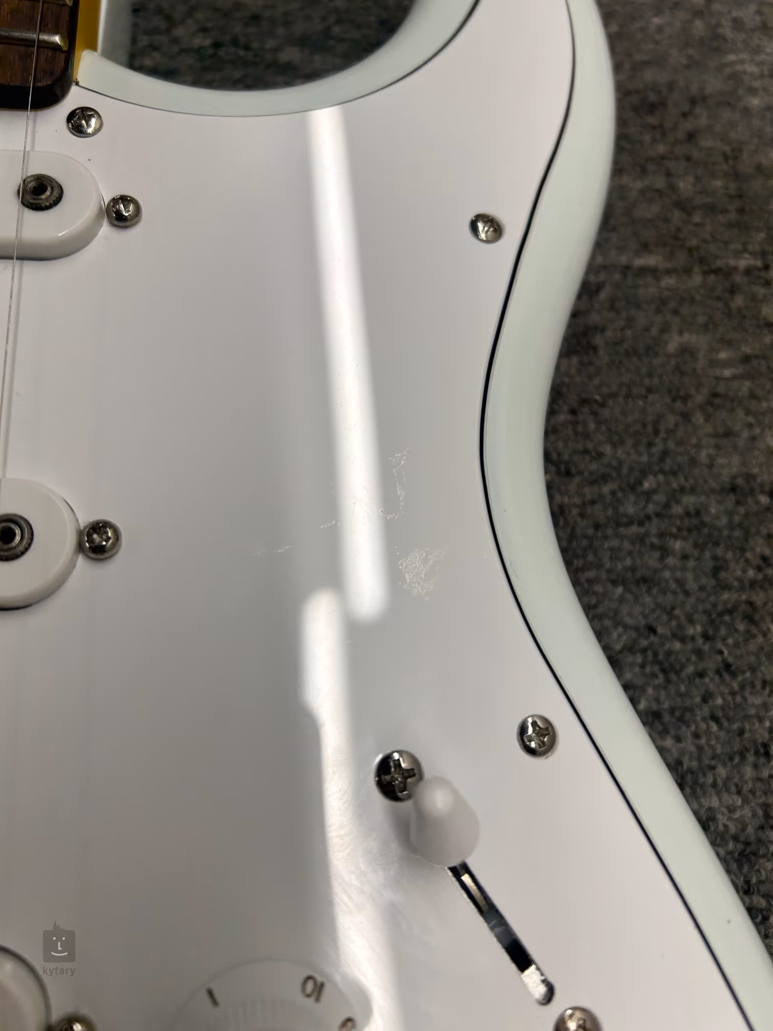 Die Saiten sind in Stimmmechaniken mit einem Übersetzungsverhältnis von 18:1 und Dual Fulcrum Tremolo mit Zweipunktaufhängung verankert. Die gute Verarbeitung wird durch das dreilagige weiße Schlagbrett und die stilvolle Kopfplatte des Instruments unterstrichen.
