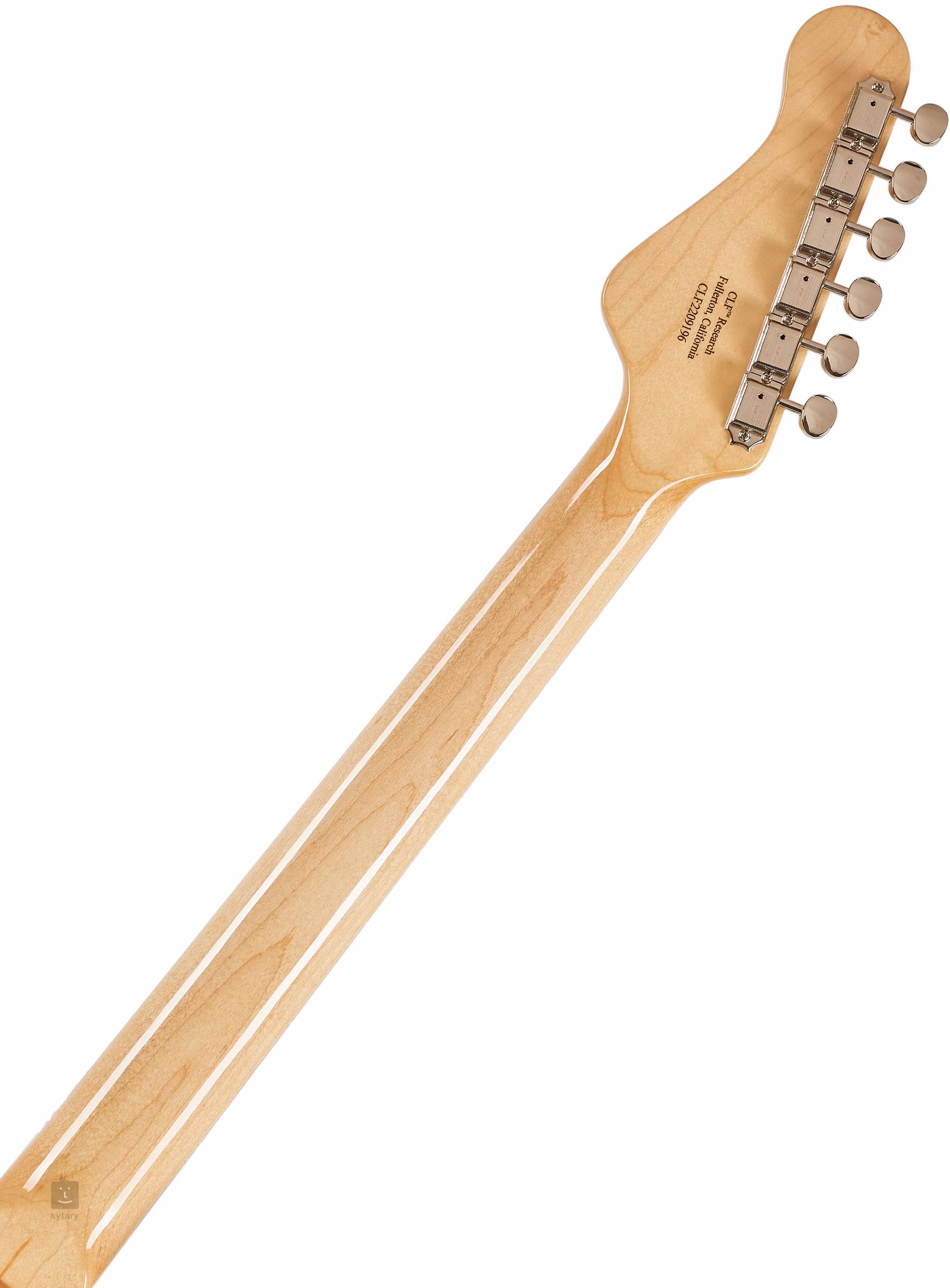 Die G&L S-500 E-Gitarre wurde der musikalischen Öffentlichkeit 1982 als Innovation des klassischen Double-Cut-Designs mit neuen Elementen in Form des Dual-Fulcrum-Vibratos und der von Leo Fender persönlich entworfenen MFD-Tonabnehmer (Magnetic Field Design) vorgestellt. Die USA CLF Research S500 Honeyburst stellt eine retro-futuristische Vision eines Instruments aus den späten 1970er Jahren dar, d.h. eine Gitarre, die vor der GL-Produktion entstand, aber bereits innovative Features in Form von Dual Fulcrum Vibrato und MFD-Pickups bietet.