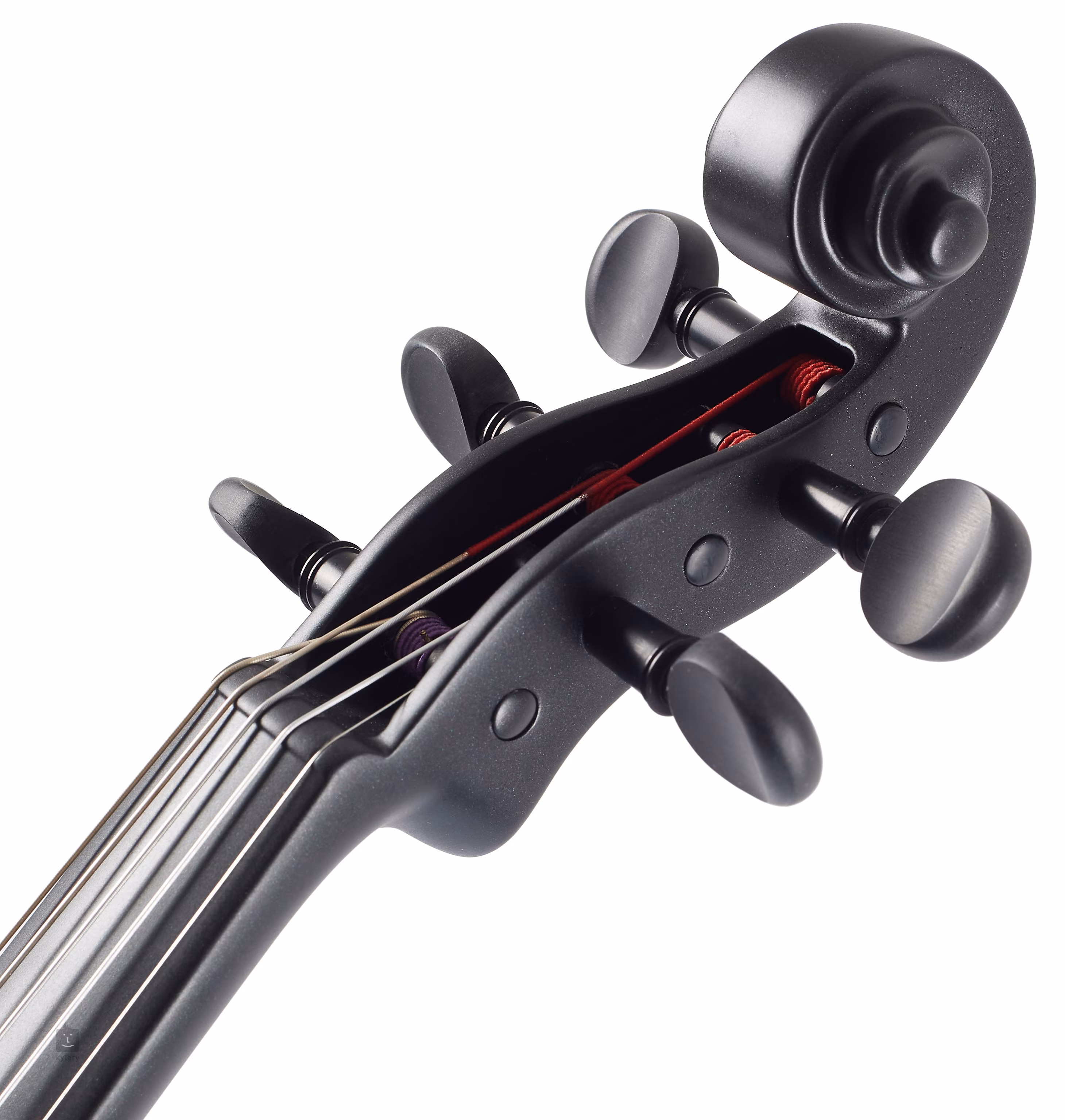 Für ihre Herstellung wurde ein spezieller Verbundwerkstoff auf Kohlefaserbasis verwendet, der diesen patentierten Instrumenten eine Haltbarkeit und klangliche Qualitäten verleiht, die man anderswo vergeblich sucht. Bei Bedarf können Sie dann die aktive Elektronik nutzen, die im Swordtail-System des Unternehmens untergebracht ist, das sich in der Kinnstütze befindet und mit dem Sie das Instrument mit dem Gerät verbinden können.