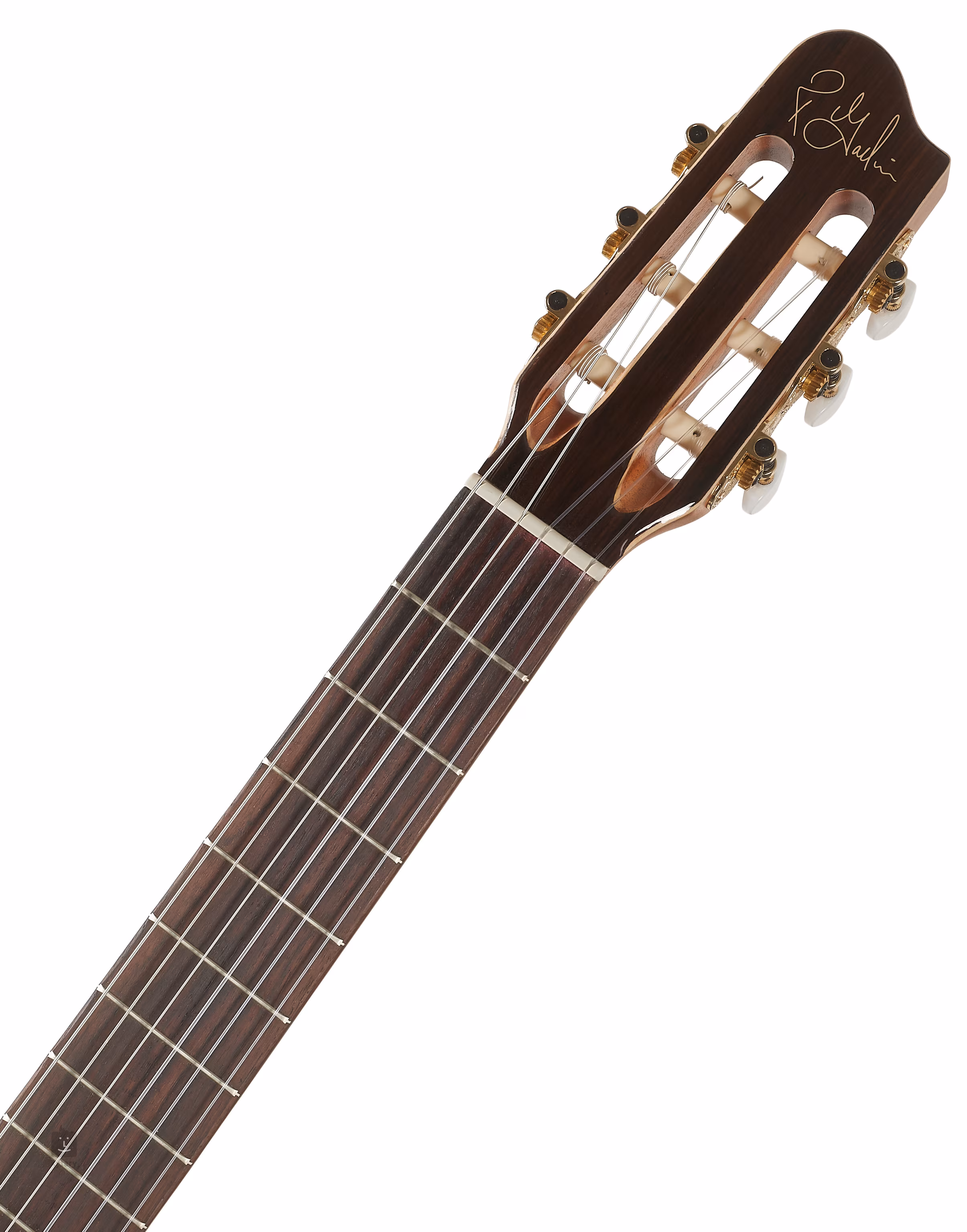 Der Resonanzboden des Modells Collection Clasica II besteht aus einem ausgewählten Stück massiver Zeder, das klanglich und optisch durch das für Zargen und Boden verwendete massive Palisanderholz ergänzt wird. Der Mahagoni-Hals und das Palisander-Griffbrett mit neunzehn Bünden sind ebenfalls Teil der "All-Star"-Holzausstattung. Die Saiten sind über dem Graphtech TusQ-Nullbund in der firmeneigenen 14:1-Übersetzung und dem Palisander-Griffbrett montiert. Die feine Handwerkskunst der Gitarre wird durch das hochglanzpolierte Finish der Decke, das doppelseitige helle Perimeter-Binding des Korpus, die mittlere Bodenverstrebung, das moderne Kopfplatten-Design und die dekorative Rosette unterstrichen.
