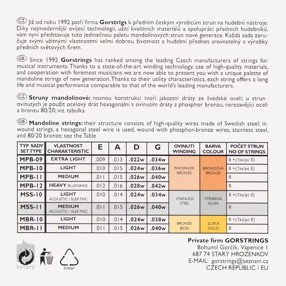Die Mandolinensaiten des tschechischen Herstellers Gorstrings sind aus erstklassigen Materialien gefertigt und sind durch die Hände der besten tschechischen Handwerker gegangen. Sie basieren auf einem sechseckigen Kern aus hochwertigem schwedischem Stahl, der mit rostfreiem Stahl umwickelt ist - das verleiht den Saiten einen scharfen, klingenden Ton, der sie in jeder Situation hervorstechen lässt. Die Saiten sind mit einer Schlaufe zum Aufhängen am Saitenhaken versehen. Geben Sie Ihrem Instrument das Beste mit Gorstrings!