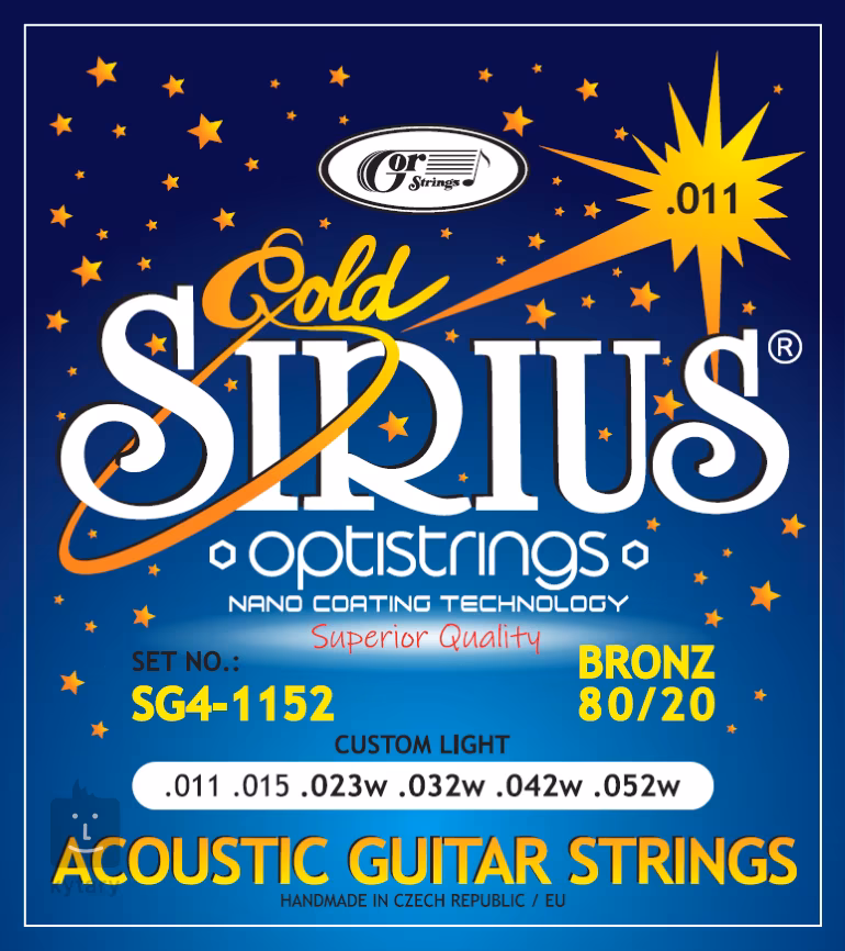 SIRIUS-Saiten haben eine lange Tradition auf dem tschechischen Markt und sind vor allem bei Tramps und Folkspielern sehr beliebt. Ihre große Anziehungskraft liegt nicht nur in ihrem günstigen Preis, sondern auch in ihrem angenehmen Klang und komfortablen Spiel. Die neue Sirius Gold Serie unterscheidet sich jedoch in mehreren Punkten von der ursprünglichen Sirius. Die Saiten haben einen sechseckigen Kern, der mit der beliebten Bronzelegierung (80/20) umsponnen ist, was ihnen einen hellen, klingenden Klang verleiht, der an jedem Lagerfeuer auffällt. Außerdem sind sie mit einer speziellen Anti-Korrosions-Beschichtung versehen, die ihre Lebensdauer erheblich verlängert. Das Ergebnis ist eine völlig neue Generation von Optistrings, die sich durch einen brillanten, warmen Klang, hohe Haltbarkeit und extrem lange Lebensdauer auszeichnet.