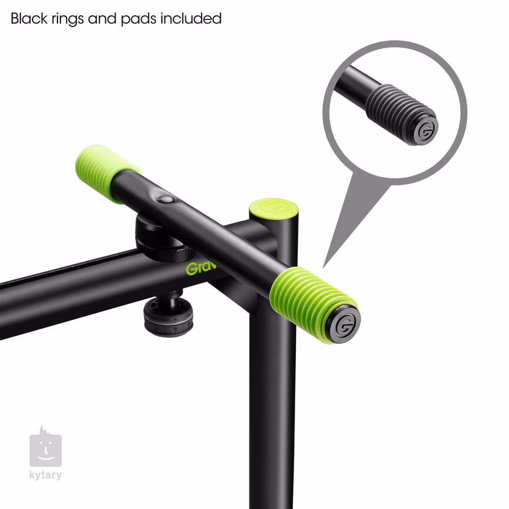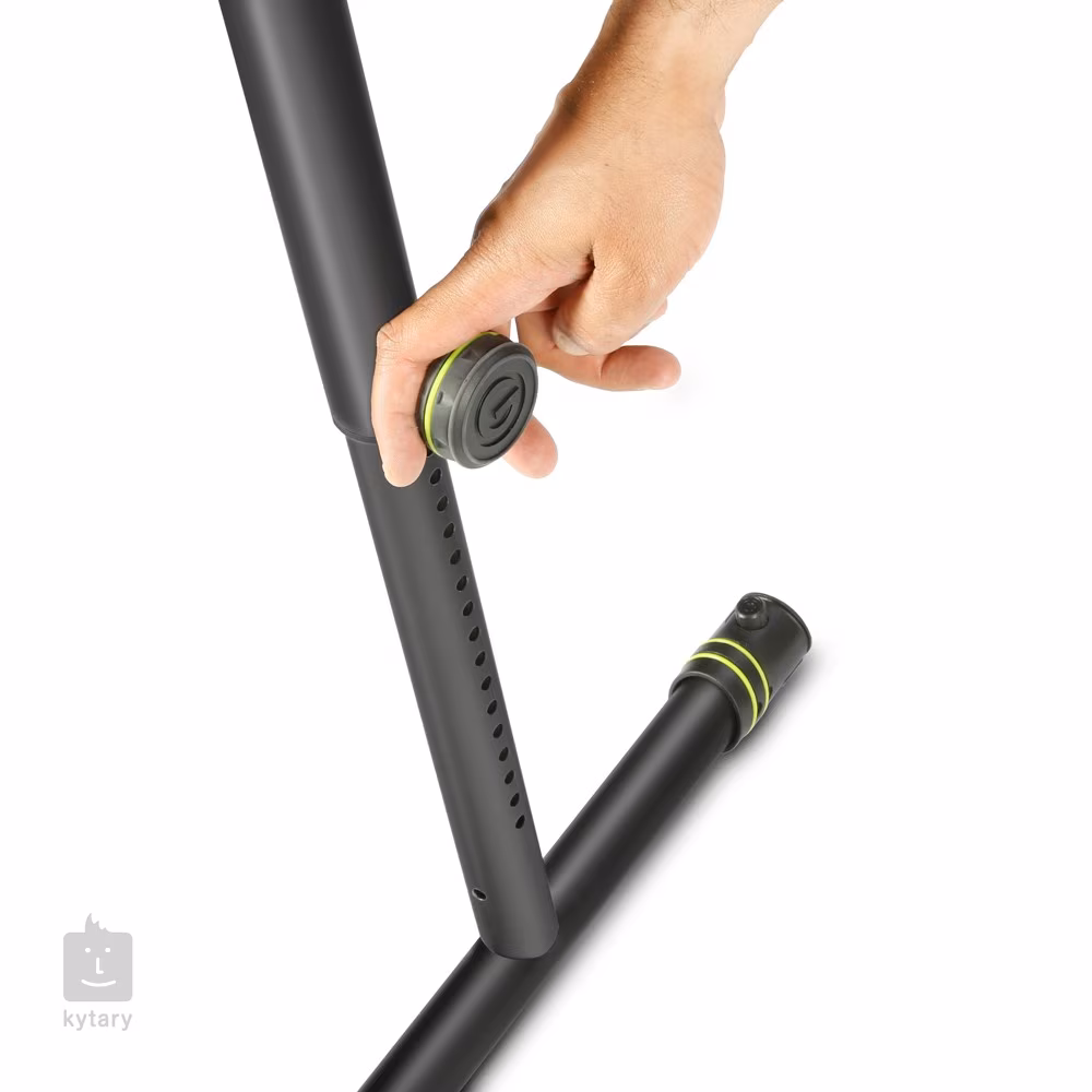 Der Gravity KS TS 01 B ist ein stabiler Keyboardständer mit einer Tischplatte, die Ihrem Instrument maximale Stabilität verleiht. Die Höhenverstellung erfolgt in kleinen Schritten und der Ständer ist sowohl zum Sitzen als auch zum Stehen geeignet. Die Beine können entweder parallel oder leicht angewinkelt eingestellt werden, um die Stabilität und Beinfreiheit zu erhöhen. Die oberen Schienen lassen sich an die Breite der Tasten anpassen und können bei Bedarf um 360° gedreht werden. Natürlich gibt es ein faltbares Design für den einfachen Transport. Der Ständer ist auch für schwere Schlüssel geeignet.