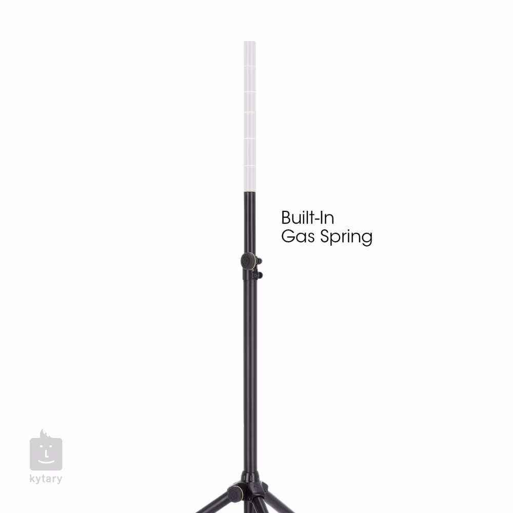 Der klassische dreibeinige Lautsprecherständer der deutschen Firma Gravity ist aus strapazierfähigem Material gefertigt und hat ein sehr geringes Gewicht für einen einfachen Transport. Wie auch die anderen Stative des Unternehmens verfügt es über ergonomisch geformte, mit thermoplastischem Gummi überzogene Schrauben, die eine sehr schnelle und bequeme Einstellung der gewünschten Höhe ermöglichen. Darüber hinaus verfügt dieser Ständer über eine einzigartige Gasfeder mit einer Hubkraft von bis zu 18 kg für eine einfache Höheneinstellung. Zudem ist der gesamte Mechanismus aus langlebigem Aluminium gefertigt und nahezu unverwüstlich.