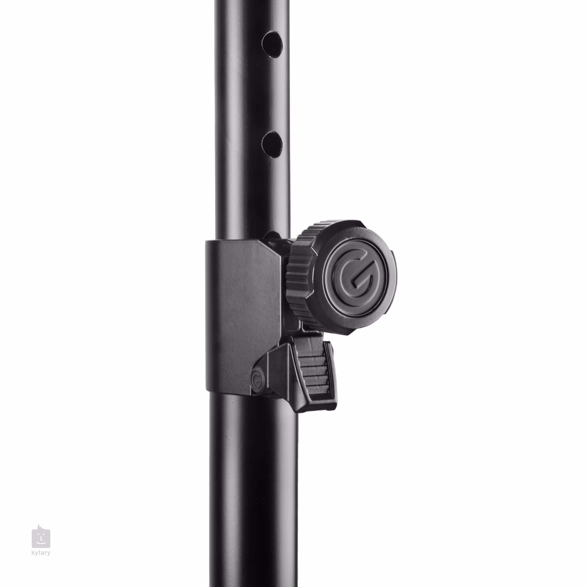 Der klassische, dreibeinige Lautsprecherständer der Touring Series ist aus robustem Stahl gefertigt und hat ein sehr geringes Gewicht, was den Transport erleichtert. Wie auch die anderen Stative des Unternehmens verfügt er über ergonomisch geformte, mit thermoplastischem Gummi überzogene Schrauben, mit denen sich die gewünschte Höhe sehr schnell und bequem einstellen lässt. Die Höhenverstellschraube verfügt über eine Sicherheitssperre und der Mechanismus ist aus Stahl gefertigt, was ihn nahezu unzerstörbar macht. Der Aluminiumguss-Sockel des Stativs ist sehr stabil, die Beine sind mit Gummiabschlüssen versehen.
