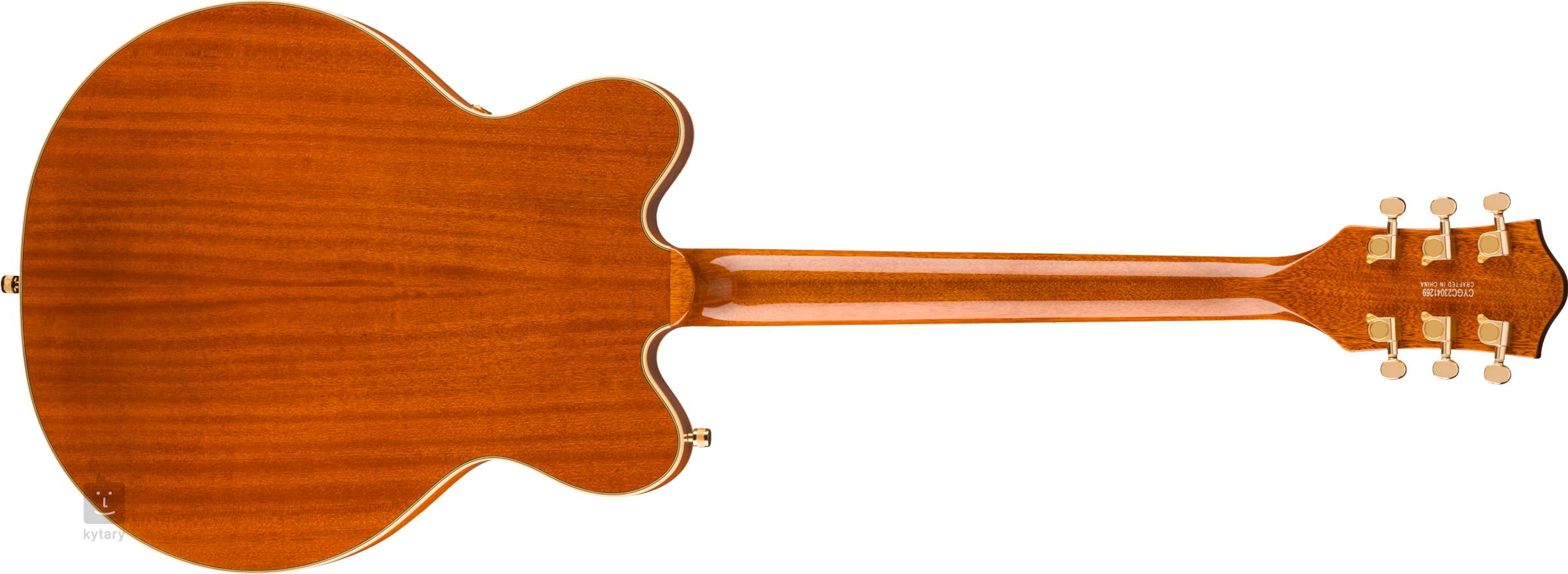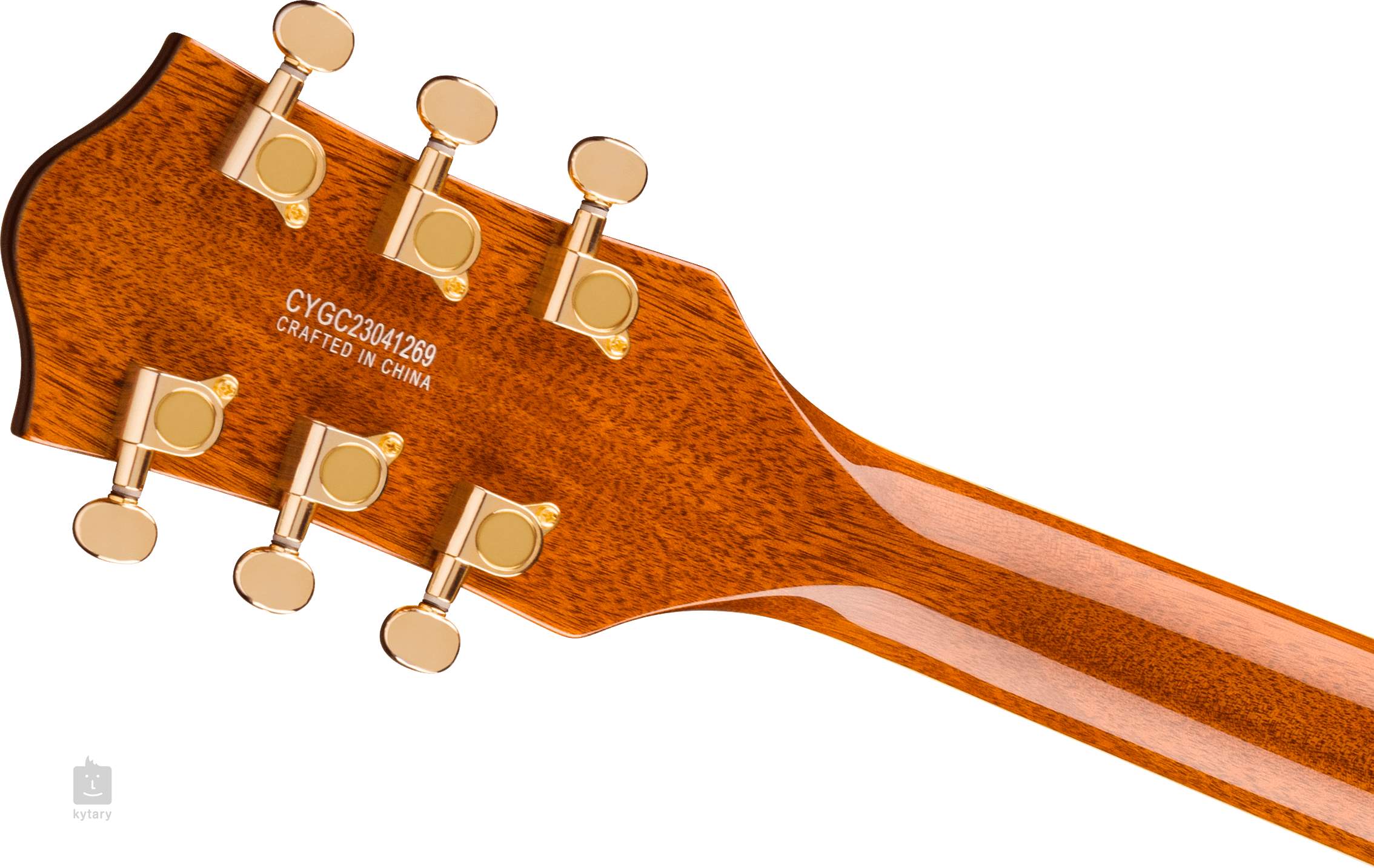 Die Saiten werden in Druckguss-Stimmmechaniken und über den Adjusto-Matic-Saitenhalter in einem lizenzierten Bigsby B70-Tremolo montiert. Das klassische, ansprechende Design der Gretsch-Gitarren wird durch eine Reihe stilvoller Merkmale unterstrichen - von der eleganten Griffbretteinfassung mit schwarzen und weißen Linien bis hin zur goldenen Hardware und dem Gold-Plexi-Pickguard.