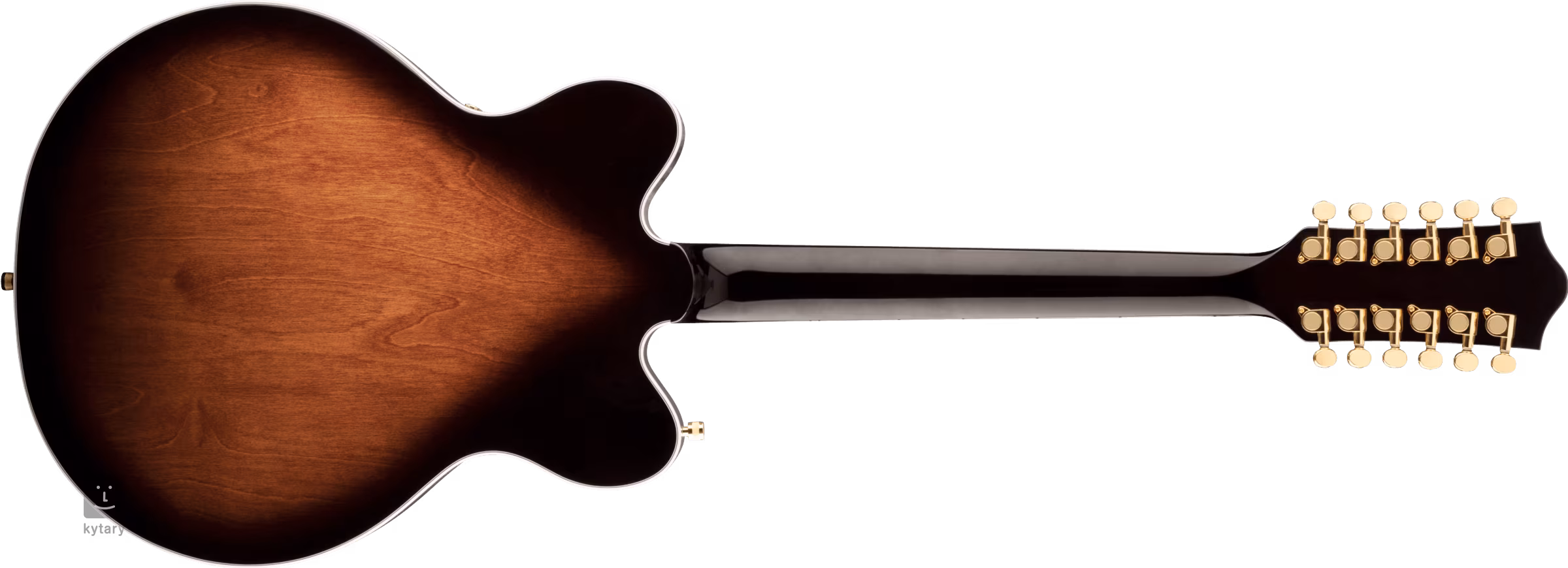 Der gewölbte Korpus der zwölfsaitigen G5422G-12 Electromatic mit vergrößerten, geflanschten F-Löchern ist aus laminiertem Ahornholz gefertigt. Die Verwendung von Böcken erhöht die Festigkeit des Korpus, verringert die Anfälligkeit für Rückkopplungseffekte und trägt zu einem fokussierteren Klang mit schnellerem Attack und längerem Sustain bei. Das neue "Classic C" Ahorn-Halsprofil und der 12-Zoll-Griffbrettradius bieten erhöhten Spielkomfort. Die Oberfläche des Griffbretts ist durch zweiundzwanzig Medium-Jumbo-Bünde und versetzte Positionsmarkierungen aus Perlmuttimitation (Neo-Classical Thumbnail) unterteilt.