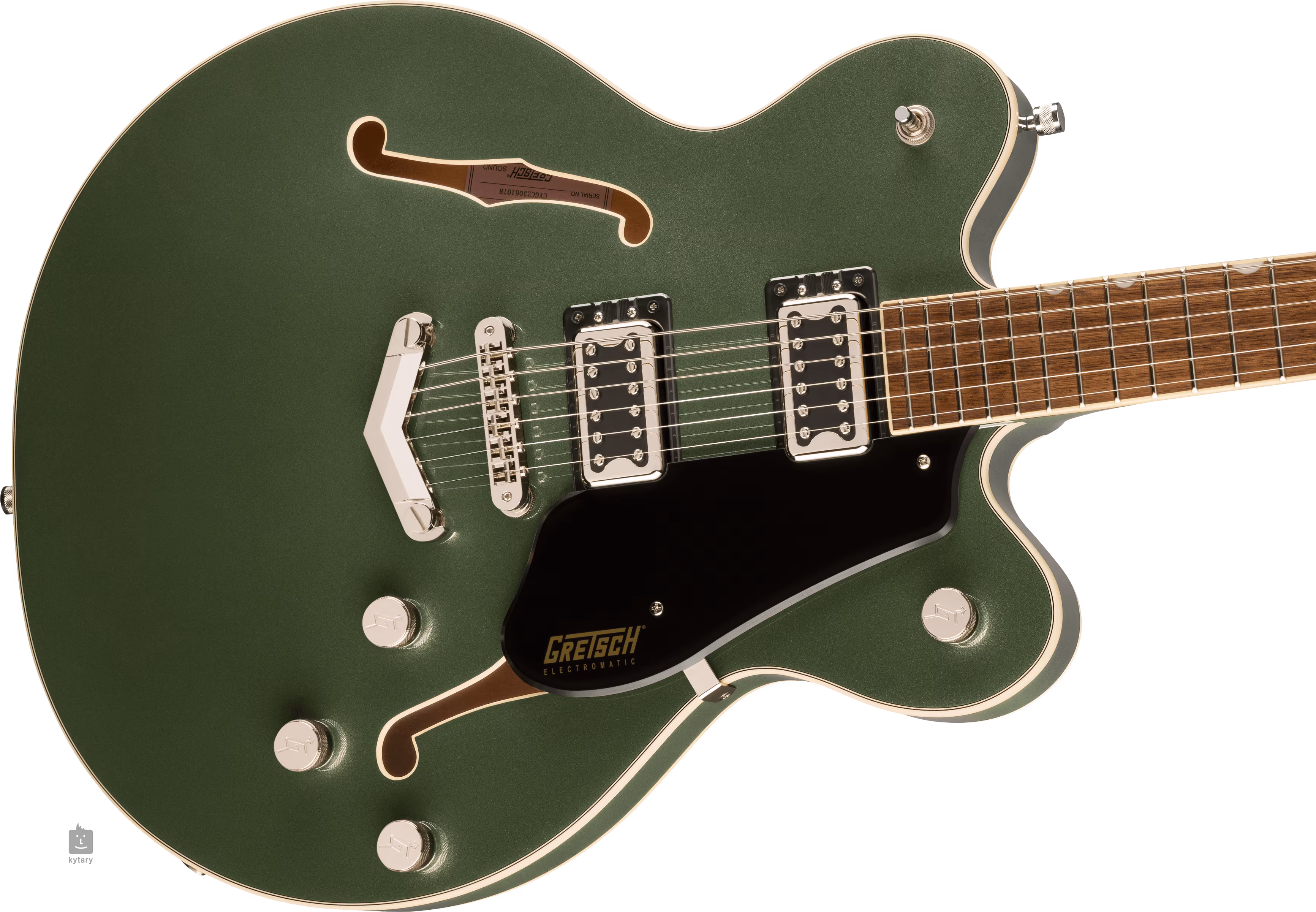 Die Präzisionsstimmung wird durch die Graphtech NuBone Null-Bund-Saitenbefestigung in den Druckguss-Stimmmechaniken, dem Adjusto-Matic verstellbaren Saitenhalter und den Saitenreitern gewährleistet. Das stilvolle Design der Gitarre wird durch traditionelle Elemente in Form von Aged White Body Binding, Nickel-Hardware und einem schwarzen Plexi-Pickguard mit dem Gretsch-Firmenlogo akzentuiert.