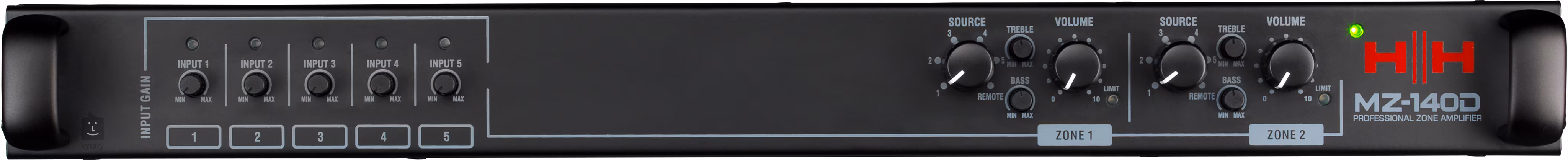 Der H&H MZ-140D ist ein Zwei-Zonen-Verstärker mit fünf Eingängen, der die perfekte Lösung für Beschallungsanlagen in Bars, Clubs, Cafés, Fitnesscentern, Geschäften, Firmenveranstaltungen und vielen anderen Veranstaltungsorten ist.