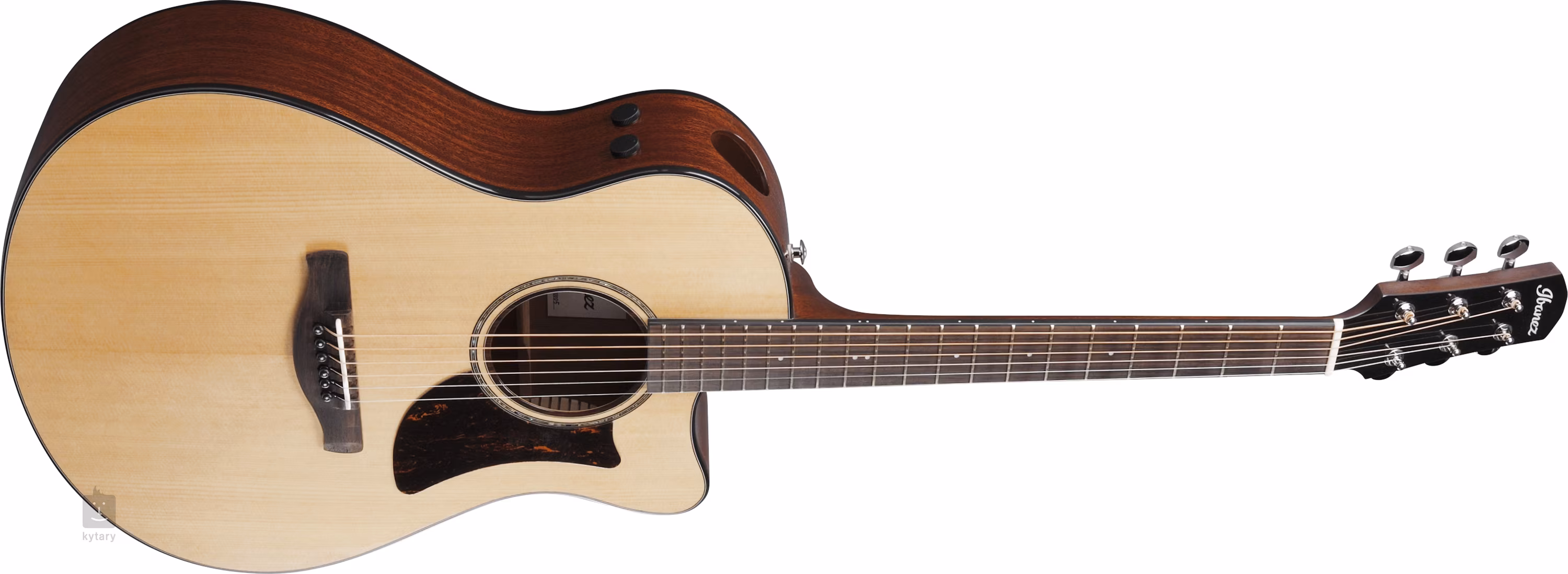 Das ergonomische Design der Ibanez Advanced Akustikgitarren baut auf den Erkenntnissen der AE-Serie und der Fingerstyle-Kollektion auf. Die neue Korpusform der Advanced Auditorium hat im Vergleich zu den Standard-Auditorium-Modellen etwas breitere Zargen, die zum Hals hin verschoben sind. Dank dieser Änderungen bietet die Gitarre einen reicheren Klang in den unteren Mitten und einen höheren Spielkomfort.