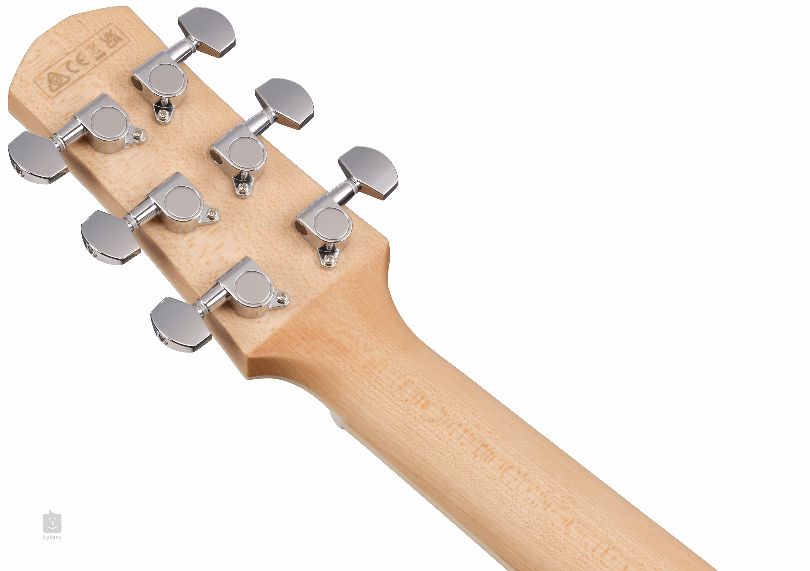 Die Vorderseite der AAM370M2E Transparent Antique White Ice Blue ist aus massiver Sitka-Fichte gefertigt, während der Boden aus laminiertem Ahorn besteht.