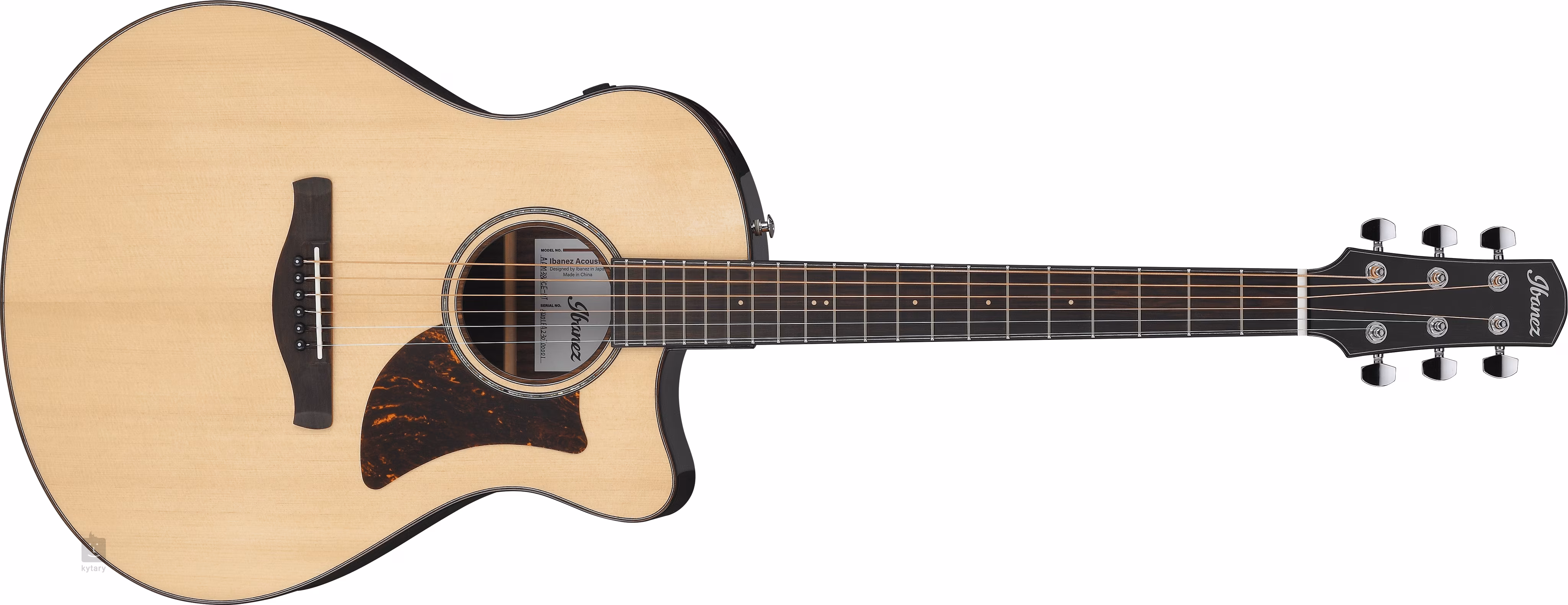 Eine originalgetreue Übertragung des akustischen Klangs und das Erfassen perkussiver Elemente wird durch die Kombination von Ibanez T-Bar-Tonabnehmer und Kontakt-Tonabnehmer gewährleistet. Die Lautstärke der einzelnen Tonabnehmer kann mit den Reglern in der Kopfplatte der Gitarre eingestellt werden. Zwei Klinkenausgänge der Gitarre bieten die Möglichkeit des Stereo- und Monoanschlusses.