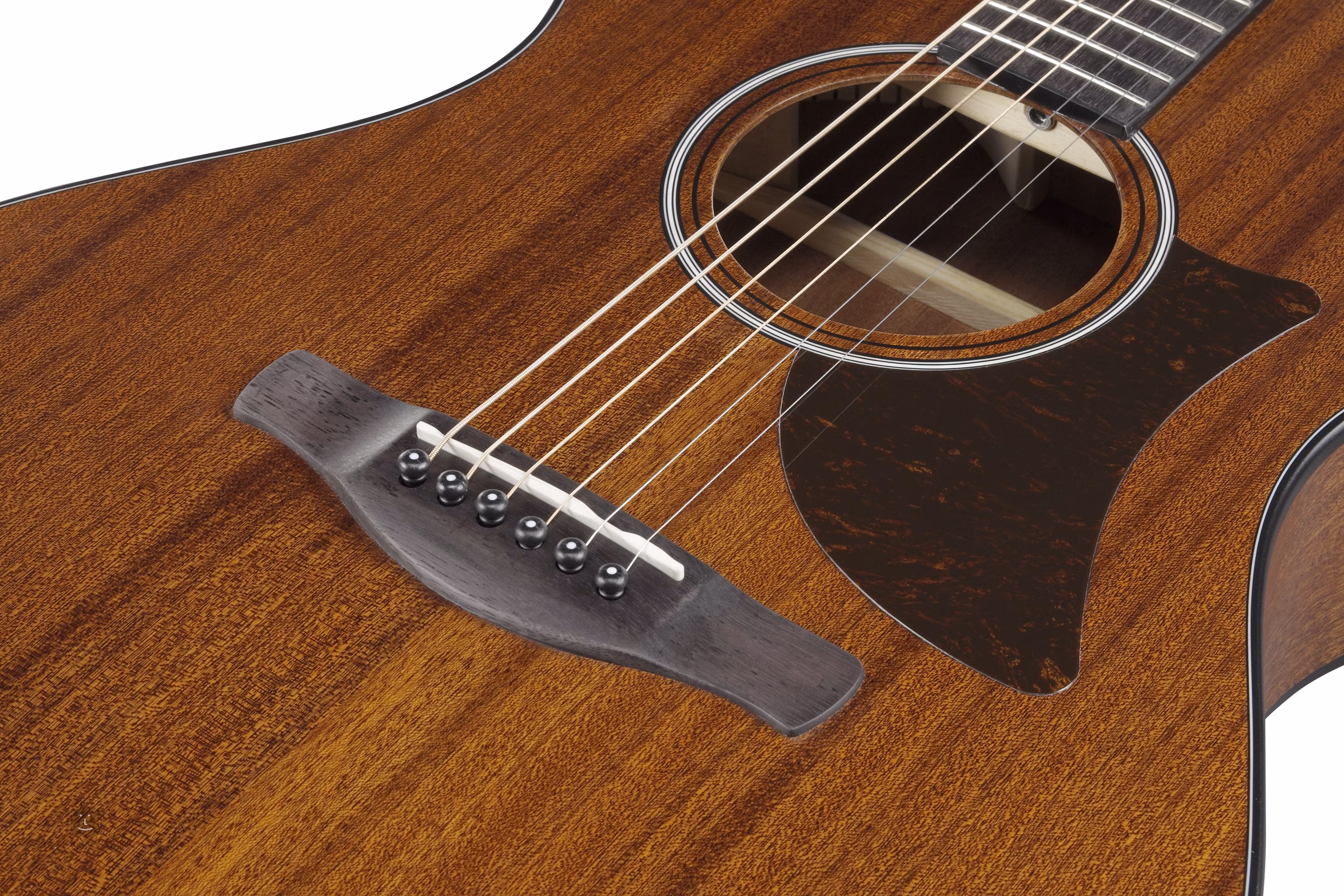 Das ergonomische Design der Ibanez Advanced Akustikgitarren baut auf den Erkenntnissen der AE-Serie und der Fingerstyle-Kollektion auf. Die neue Korpusform der Advanced Auditorium hat im Vergleich zu den Standard-Auditorium-Modellen etwas breitere Zargen, die zum Hals hin verschoben sind. Dank dieser Änderungen bietet die Gitarre einen reicheren Klang in den unteren Mitten und einen höheren Spielkomfort.