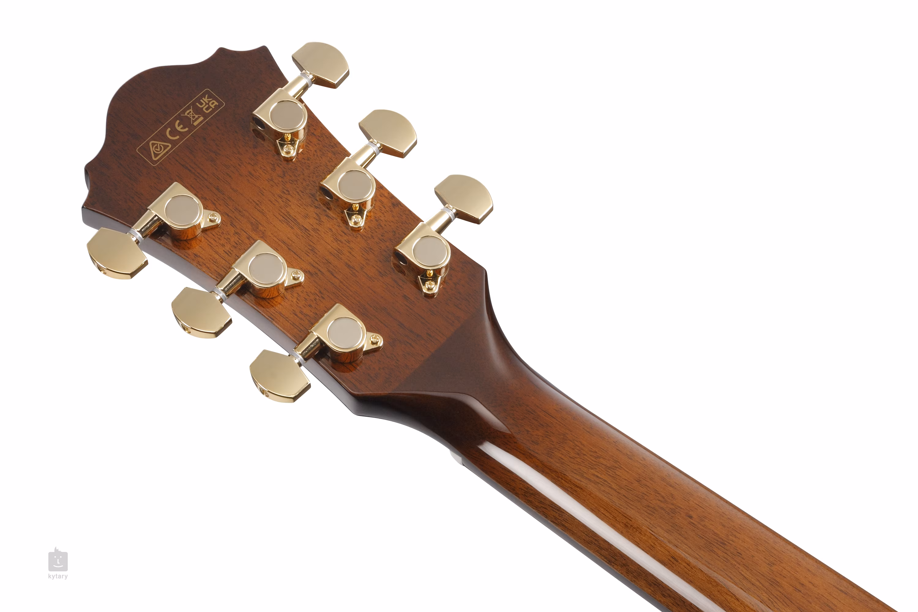 Die Saiten werden in einer Druckgussmechanik mit einem Übersetzungsverhältnis von 18:1 und einem Palisandergriffbrett mit Knochengriffbrett und kompensiertem Sattel gehalten. Die Ibanez Advantage-Wirbel bieten gegenüber den Standardmodellen Vorteile in Bezug auf einfache Handhabung und festen Saitenhalt. Die stilvolle Verarbeitung wird durch die weiße Korpusumrandung, Rosette aus Perlmutt (Abalone) und Holzringen, Positionsmarker aus Ahorn und Perlmutt (Abalone), goldene Hardware und Schlagbrett aus Schildpatt-Imitat unterstrichen.