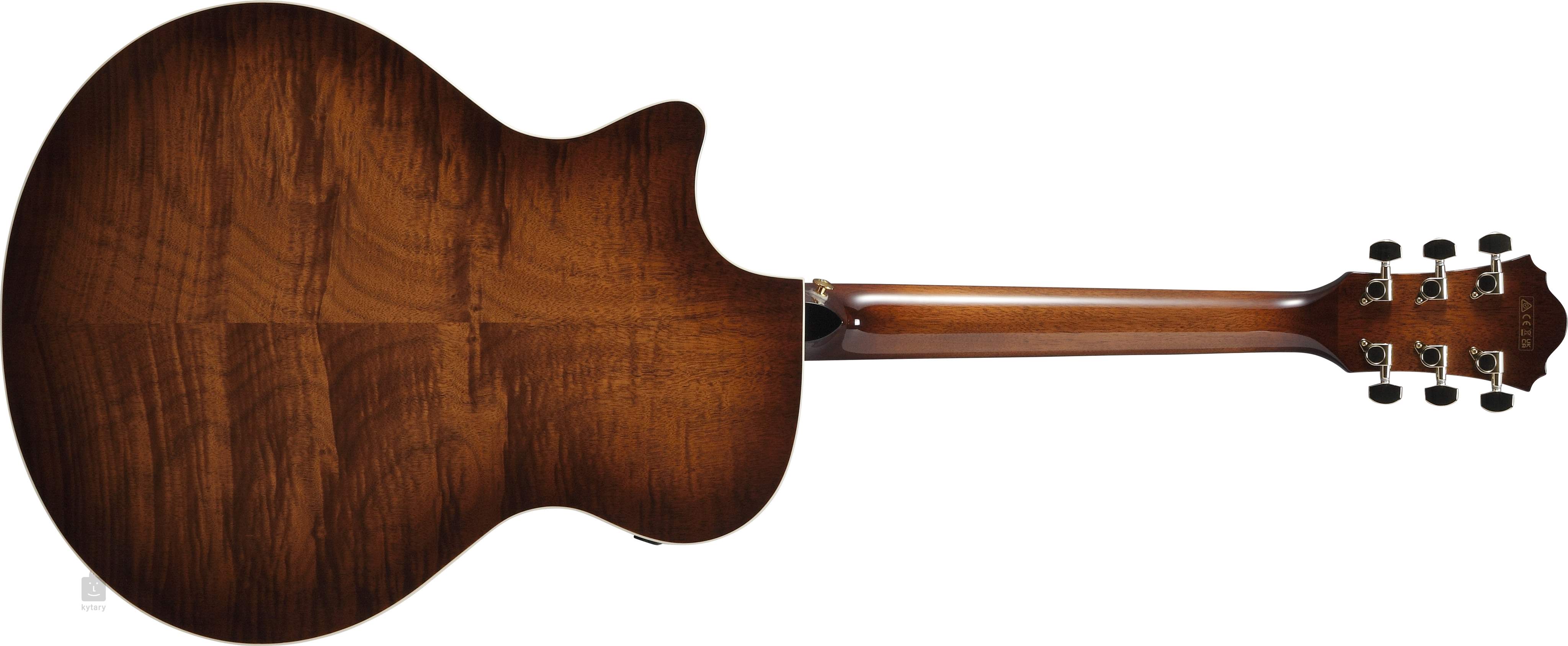Der Korpus der AE340FMH-MHS besteht aus furniertem Okoumé - Massivholz vorne, Massivholz Boden und Zargen. Ein Palisander-Griffbrett mit 20 Jumbo-Bünden ist auf den exotischen Nyatoh-Hals geleimt. Sorgfältig entworfene, reduzierte X-M-Rippen und die Anordnung der Rippen sorgen für eine effiziente Übertragung der Saitenschwingungen über das Griffbrett auf den Korpus. Das schmale "C"-Halsprofil und die abgerundeten Griffbrettkanten bieten dem Spieler einen höheren Spielkomfort. Ein interessantes Merkmal ist das speziell entwickelte Loch auf der Rückseite des Instruments (A.I.R.port), durch das man besser hören und fühlen kann, was man spielt.