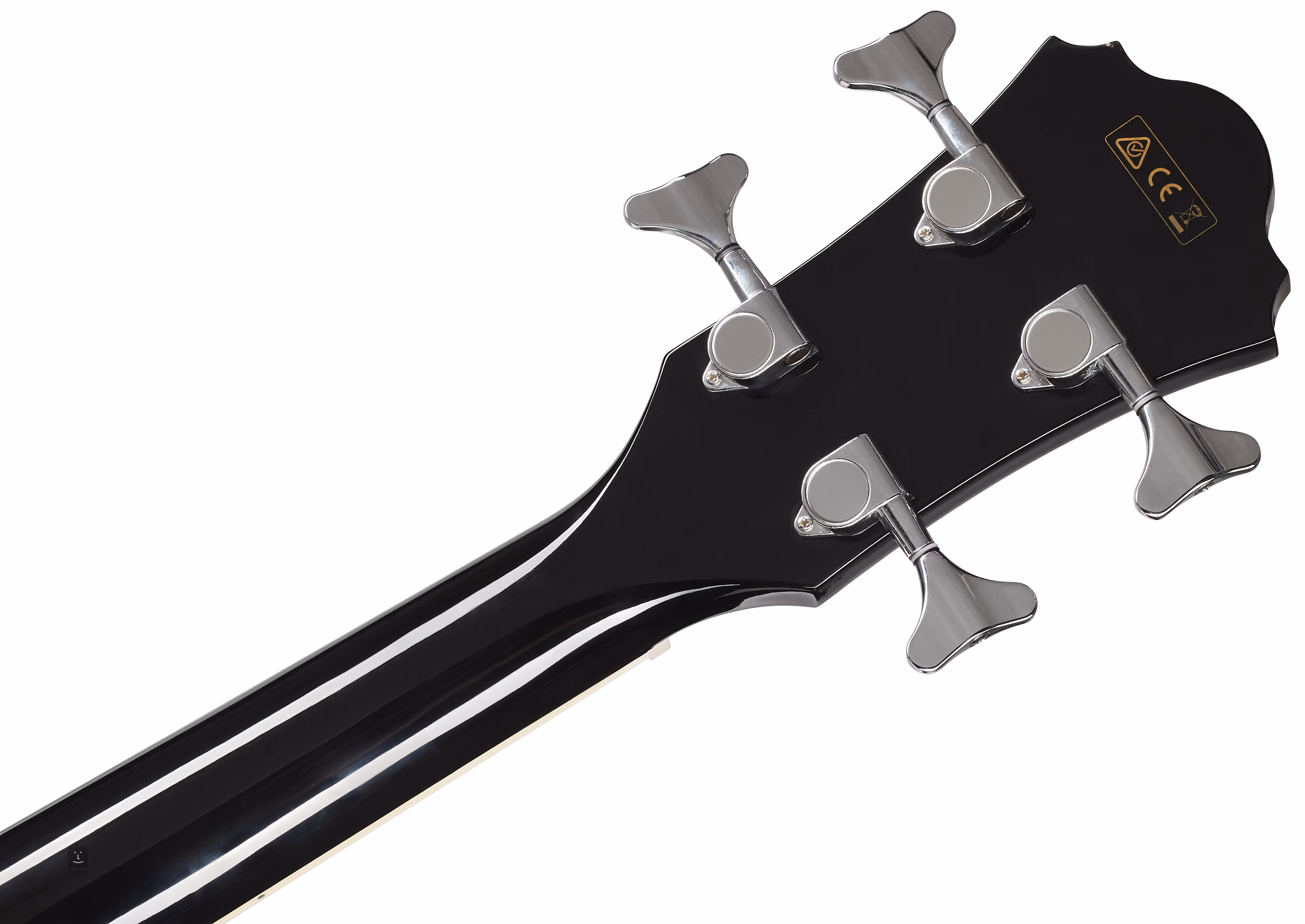 Die Saiten sind in das verchromte Druckguss-Chassis und die Kopfplatte aus Purpleheart über ein Ivorex II-Griffbrett aus Knochenimitat eingespannt. Das Ivorex II-Material ist stärker und haltbarer als Knochen und gewährleistet eine perfekte Übertragung aller Frequenzen. Das stilvolle Finish wird durch eine Rosette aus schwarzen und weißen Linien und eine kontrastierende weiße Korpuseinfassung akzentuiert.