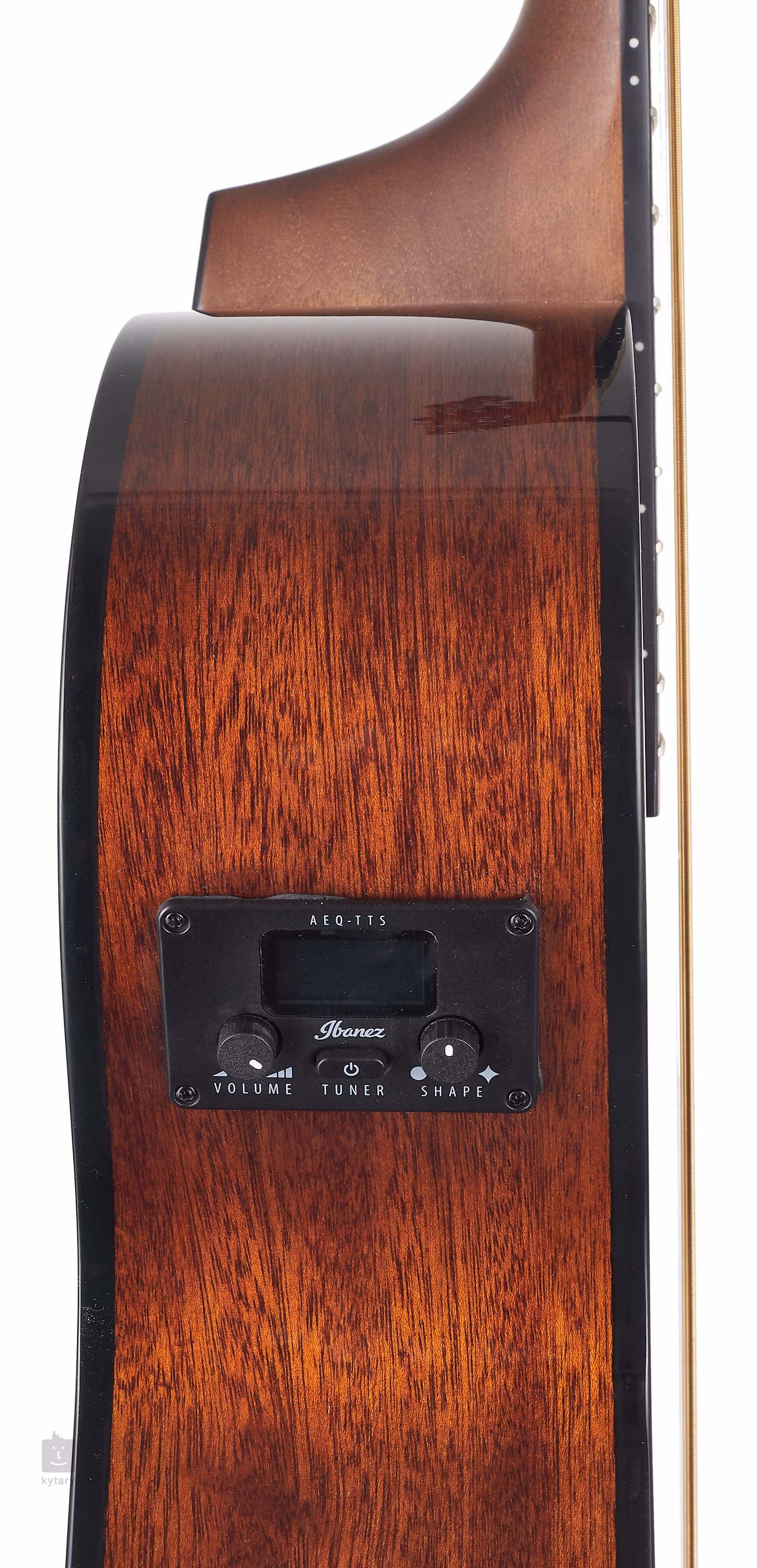 Die Ibanez AEQ-TTS-Elektronik mit integriertem Stimmgerät im Gitarrenbalg und einem Underblock-Piezo-Tonabnehmer sorgt für eine ausreichende Lautstärke für öffentliche Auftritte oder das Spielen mit einer Band. Die Saiten werden von verchromten Druckguss-Stimmmechaniken und einem Palisander-Griffbrett gehalten. Die Wirbel in der Kopfplatte der Ibanez Advantage bieten im Vergleich zu Standardmodellen Vorteile in Bezug auf einfache Handhabung und festen Saitenanschlag. Der stilvolle Look des Instruments wird durch traditionelle Elemente in Form einer schwarz-weißen Korpusverkleidung und Rosetten mit Perlmuttimitatringen akzentuiert.