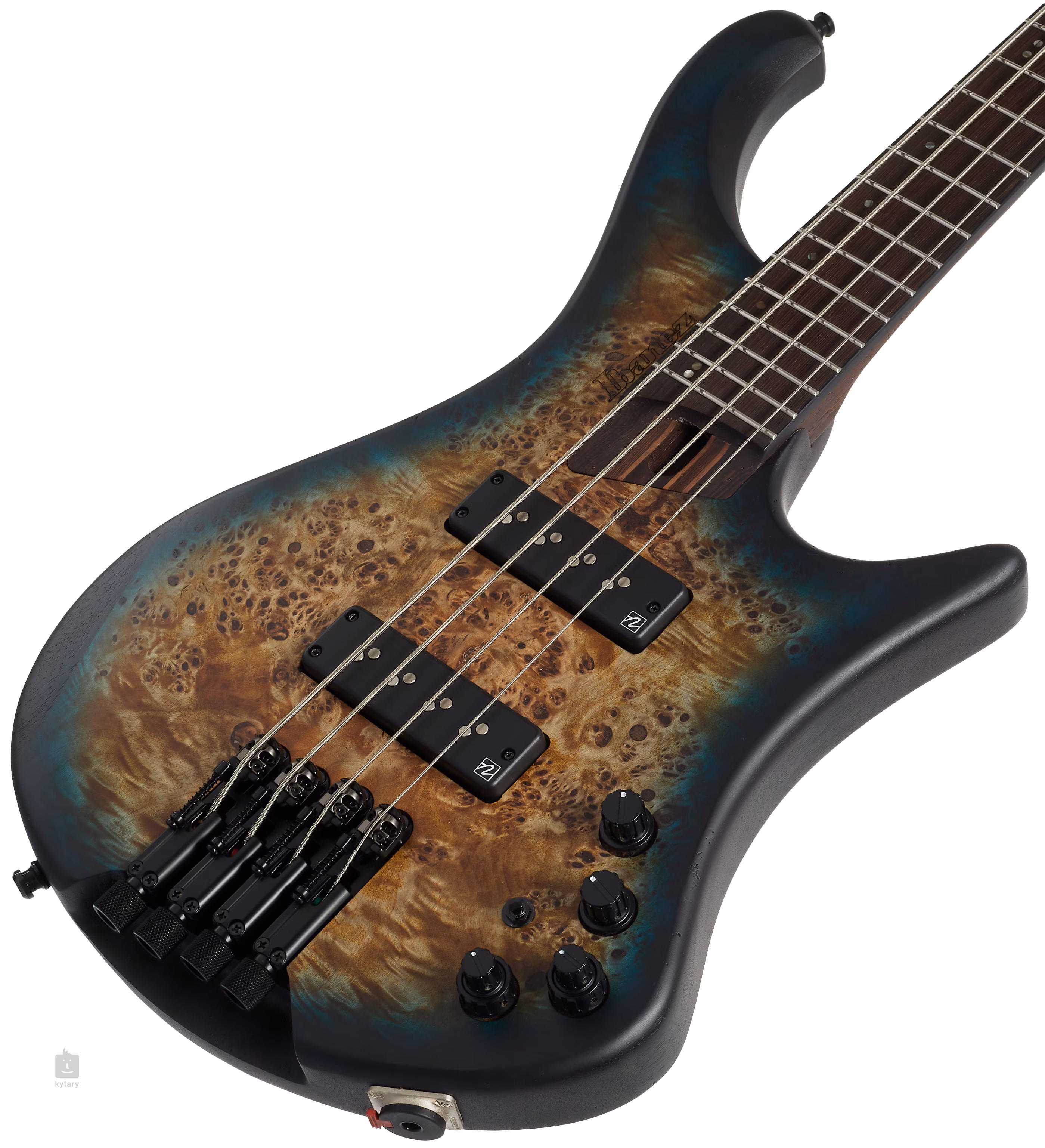 Der Korpus des Basses besteht aus leichtem afrikanischen Mahagoni mit einer schönen Pappeldecke, die nicht nur optisch ansprechend ist, sondern auch einen warmen und resonanten Ton mit reichhaltigen Klangeigenschaften liefert. Eine Aussparung auf der Rückseite des Korpus ermöglicht einen leichten Zugang zu den höheren Bünden, ein großer Vorteil für technisch anspruchsvolle Soli.