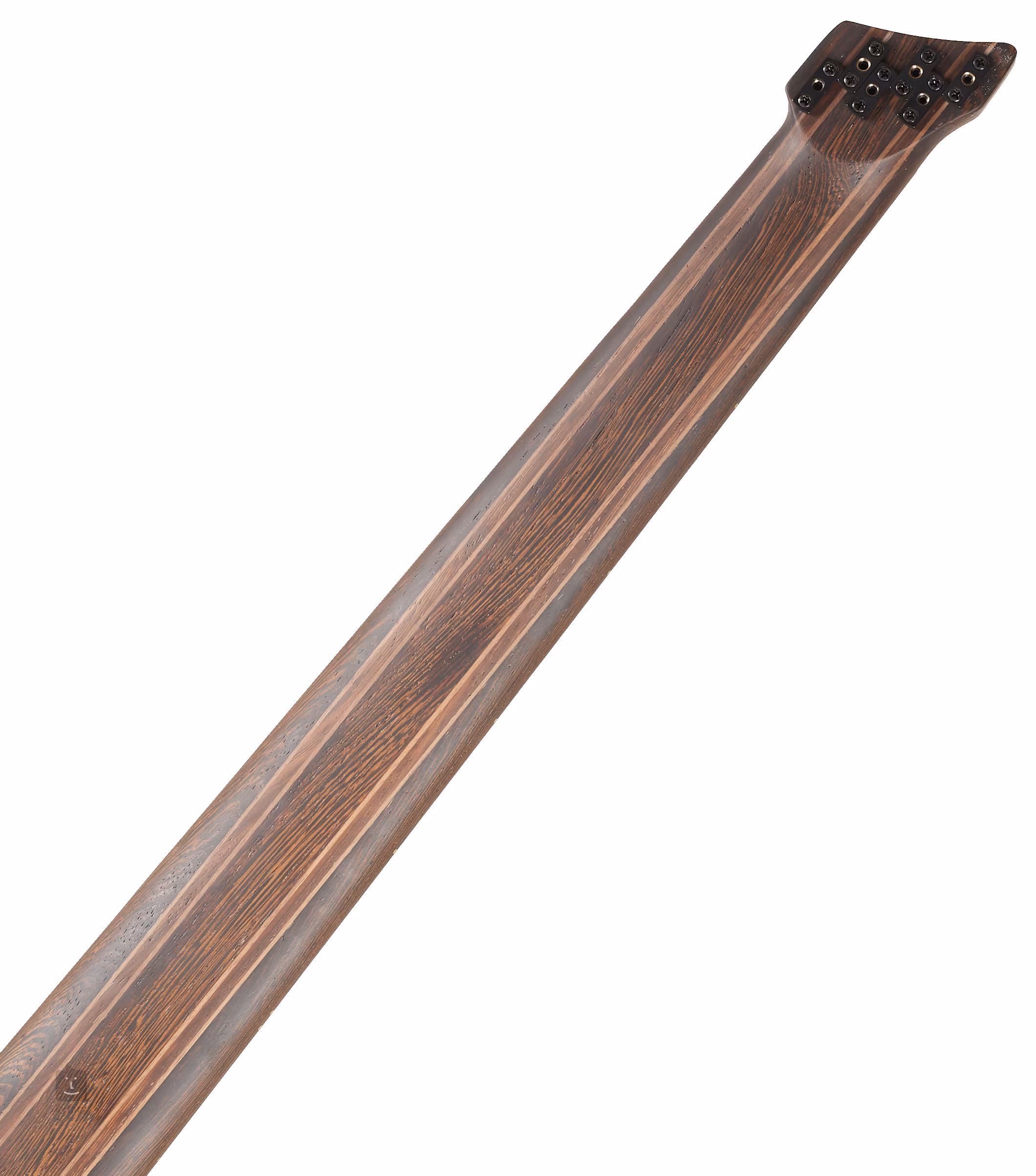 Der gekammerte Korpus des Instruments ist aus ausgesuchtem afrikanischem Mahagoni mit einer attraktiv gemaserten Pappeldecke gefertigt, wobei eine hervorragende Balance und dank der abgerundeten Kanten eine ausgezeichnete Ergonomie gewährleistet sind. Der Hals, der aus einer Kombination von neun Stücken Walnuss- und Panga-Panga-Holz besteht, ist mit fünf Schrauben am Korpus befestigt und mit Graphitstreben verstärkt. Das Griffbrett ist ebenfalls aus Panga-Panga-Holz und mit einem Binding versehen. Das Griffbrett ist ebenfalls ein Multiscale-Typ, der dank der abgeschrägten Bünde eine variable Menzatura von 838 bis 889 Millimetern bietet. Dieses System hat viele Vorteile, aber der wichtigste ist die deutliche Verbesserung des Spielkomforts, da es eine natürlichere Bewegung der Hand auf dem Griffbrett ermöglicht.