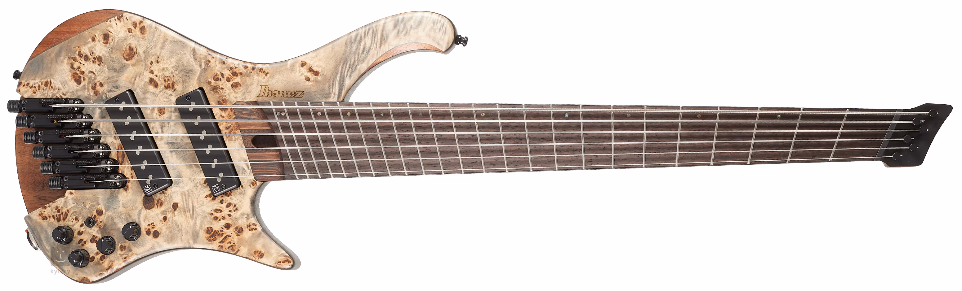 Der Bass stammt aus der Ibanez Workshop-Modellserie, die mit verschiedenen typischen Features und Innovationen verbunden ist. Kenner werden sich über die Leuchtmarkierungen an der Griffbrettseite, den abschließbaren Neutrik-Klinkenausgang, Gurtgriffe mit Schaller S-Locks, das extra tiefe Cutaway für bequemes Spielen auch in den höchsten Lagen oder die abnehmbare Fingerauflage freuen. Obwohl es sich um einen Headless-Bass handelt, muss man sich keine Gedanken über den Saitenwechsel machen, denn er ist mit einem qualitativ hochwertigen D'Addario EXL170-5SL-Satz bespannt. Ein Softcase ist ebenfalls im Lieferumfang enthalten.