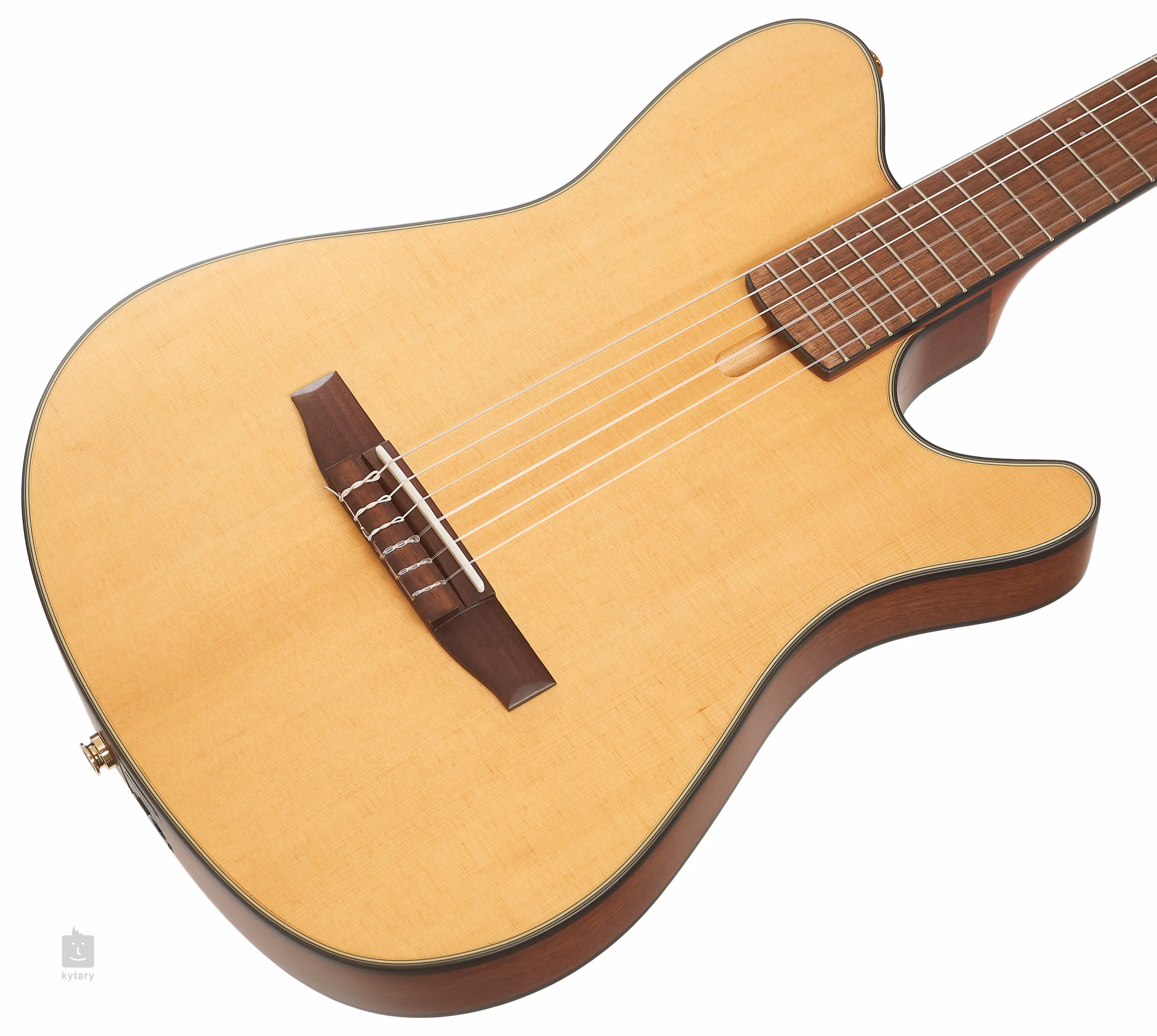 Die klassische elektroakustische Gitarre Ibanez FRH kombiniert den Klang von Nylonsaiten mit der Spielbarkeit von E-Gitarren. Sie verfügt über einen kompakten, schmalen Korpus mit seitlicher Schallöffnung, einen Bodenausschnitt für leichten Zugang auch zu den höchsten Lagen des Griffbretts, einen schmaleren Nullbund (46 mm) und einen flacheren Griffbrettradius. Das Fehlen eines Schalllochs auf der Decke macht die Gitarre viel weniger anfällig für den normalerweise unerwünschten Rückkopplungseffekt beim Klingen.