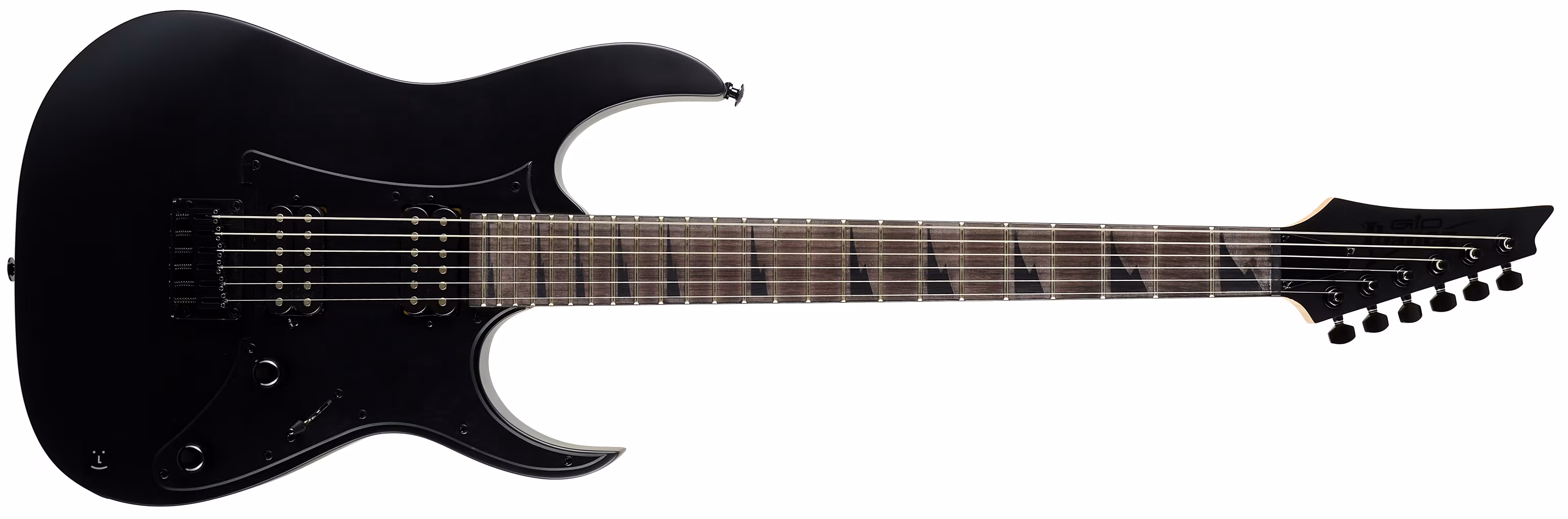 Der Korpus der Gitarre ist aus Pappelholz gefertigt. Der Ahornhals ist mit einem Purpleheart/Amaranth-Griffbrett mit vierundzwanzig Jumbo-Bünden verleimt. Die Orientierung auf der Oberfläche wird durch unkonventionelle, umgekehrte schwarze Positionsmarker im Sharktooth-Design erleichtert.