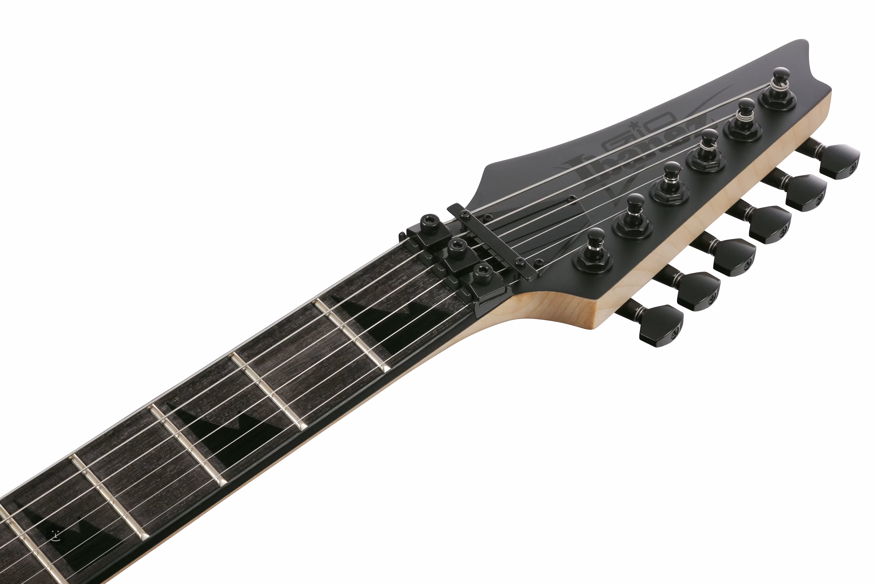 Der Pappelkorpus der Gitarre ist mit einer Mattlackierung und einem Black Flat Finish versehen. Der Ahornhals ist auf ein Purpleheart/Amaranth-Griffbrett mit vierundzwanzig Medium-Bünden geleimt. Die Orientierung auf seiner Oberfläche wird durch schwarze Positionsmarker im Sharktooth-Design erleichtert.