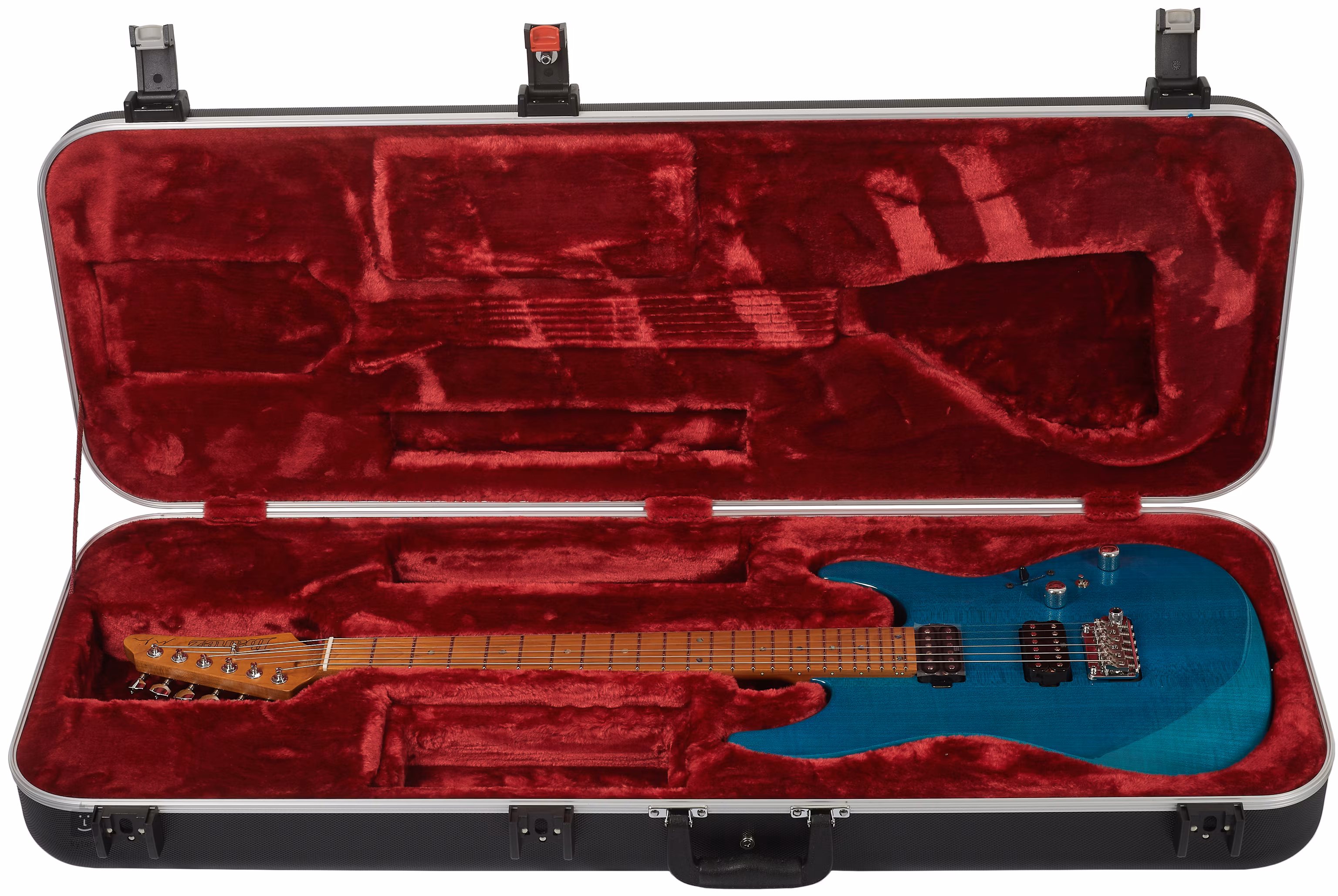 Der Mahagonikorpus des Instruments ist mit einer Decke aus furniertem Ahorn verziert. Die Wärmebehandlung des Ahornhalses und des Griffbretts vor dem Zusammenbau verbesserte die Eigenschaften des Holzes (Stabilität, Haltbarkeit, Widerstandsfähigkeit gegen Wasser und Temperaturschwankungen) und verlieh der Gitarre ein angenehmes Vintage-Gefühl. Das Griffbrett ist mit Jumbo-Bünden aus rostfreiem Stahl ausgestattet, die Orientierung wird durch Perlmutt-Positionspunkte und Leuchtmarkierungen an der Seite des Griffbretts erleichtert.