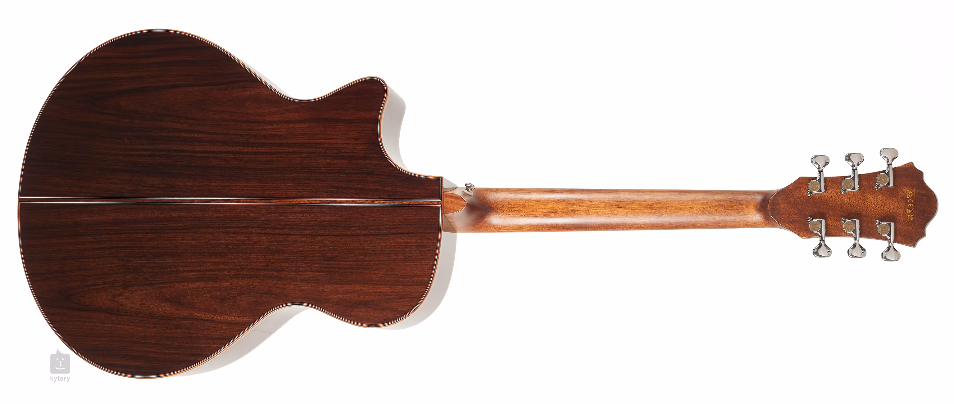 Die Vorderseite der Gitarre ist aus massiver Sitka-Fichte, Boden und Zargen sind aus laminiertem Pau Ferro mit attraktiver Holzmaserung. Sorgfältig entworfene, reduzierte X-M-Rippen und die Anordnung der Zargen sorgen für eine effiziente Übertragung der Saitenschwingungen durch das Griffbrett auf den Korpus, und ein Holzschliff im Korpus sorgt für einen "Kick"-Sound beim perkussiven Spiel. Der Hals aus Nyatoh-Holz ist auf ein Makassar-Griffbrett aus Ebenholz geklebt, das mit zwanzig Bünden versehen ist. Perlmutt-Positionsmarkierungen erleichtern die Navigation auf dem Griffbrett, während das schmale Thin-C-Halsprofil, die abgerundeten Griffbrettkanten und die untere Korpusaussparung eine einfache Kontrolle und Bewegung des Griffbretts über die gesamte Länge des Griffbretts gewährleisten.