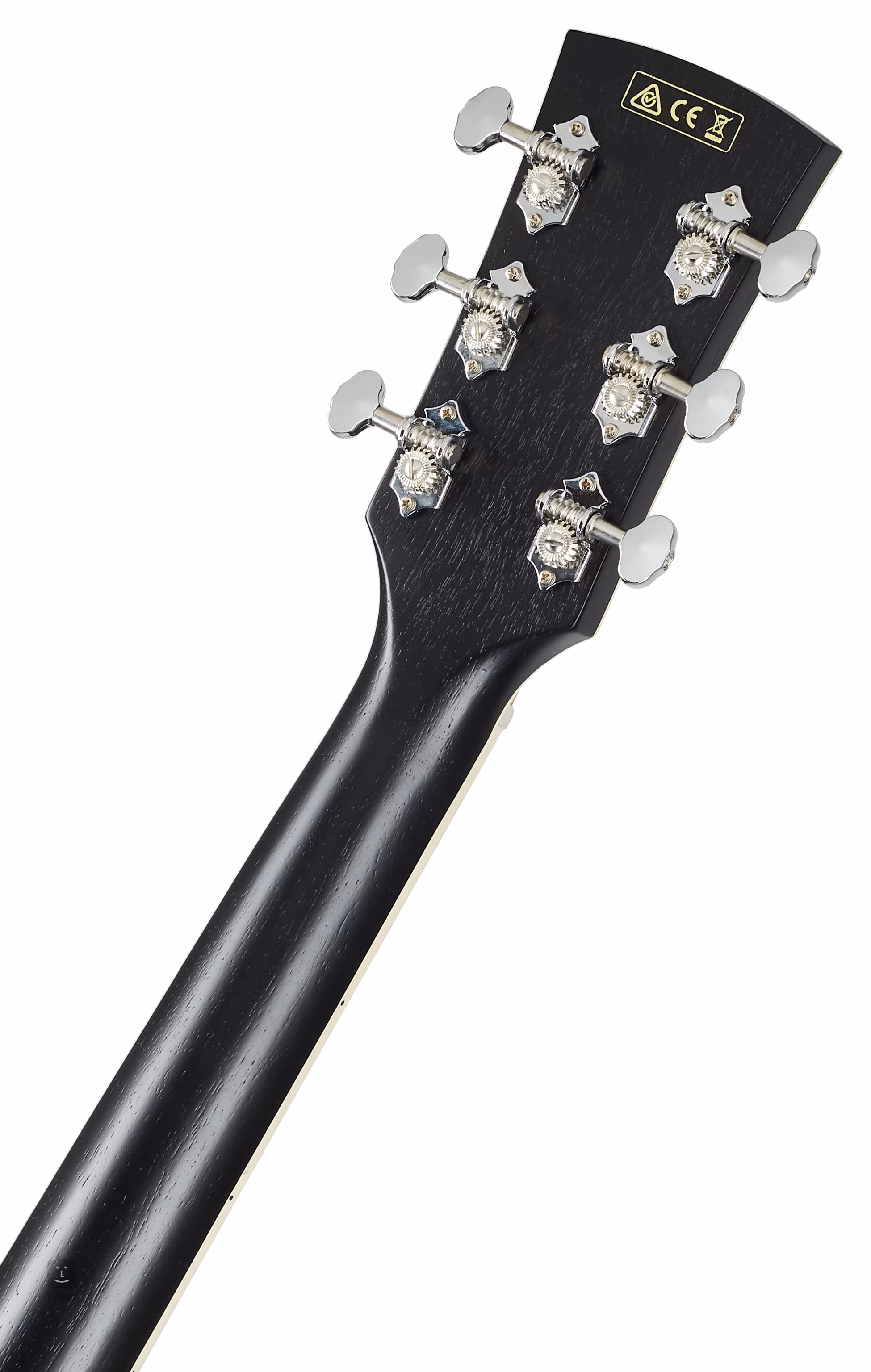 Der kompaktere Grand Concert-Korpus der PC14MHCE-WK ist aus laminiertem Okoumé gefertigt. Auf den Hals aus Nyatoh-Holz ist ein Griffbrett aus Feigenholz mit zwanzig Bünden geklebt. Die Orientierung auf seiner Oberfläche wird durch weiße Positionspunkte erleichtert. Die Saiten sind in offenen Chrom-Mechaniken und einem Feigenholz-Griffbrett montiert. Die Wirbel im Griffbrett der Ibanez Advantage bieten gegenüber den Standardmodellen den Vorteil, dass sie leicht zu handhaben sind und die Saiten fest sitzen.