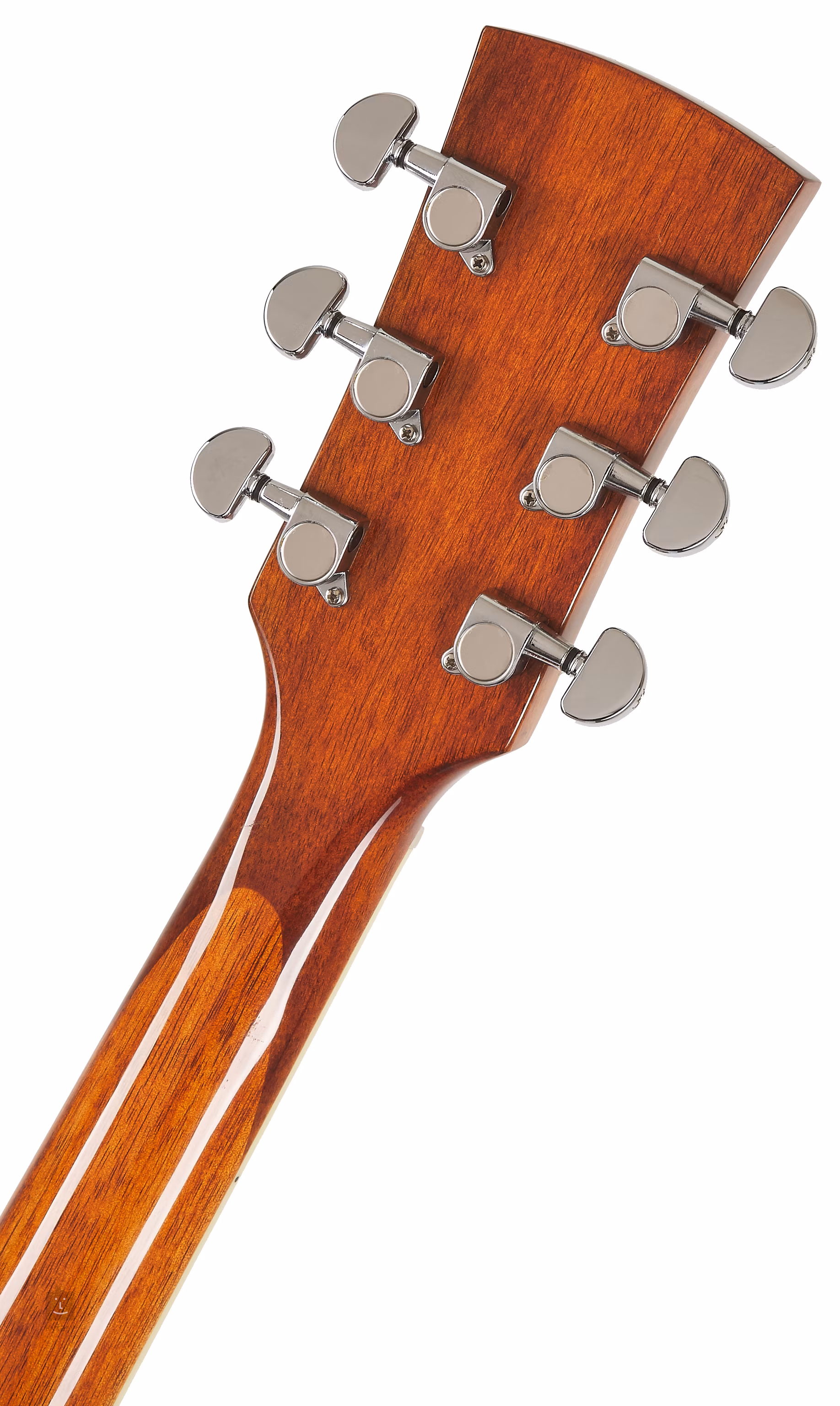 Der geschichtete Korpus der Gitarre besteht aus Fichtenfront und Okoumé-Boden und -Zargen. Auf den Hals aus Nyatoh-Holz ist ein Feigenholz-Griffbrett mit zwanzig Bünden geleimt. Die Resonanz des Korpus wird durch die traditionelle X-Riffelung unterstützt, und die Orientierung auf der Griffbrettoberfläche wird durch Positionspunkte erleichtert. Ein schwarzes Schlagbrett schützt das Holz des Instruments vor Kratzern.